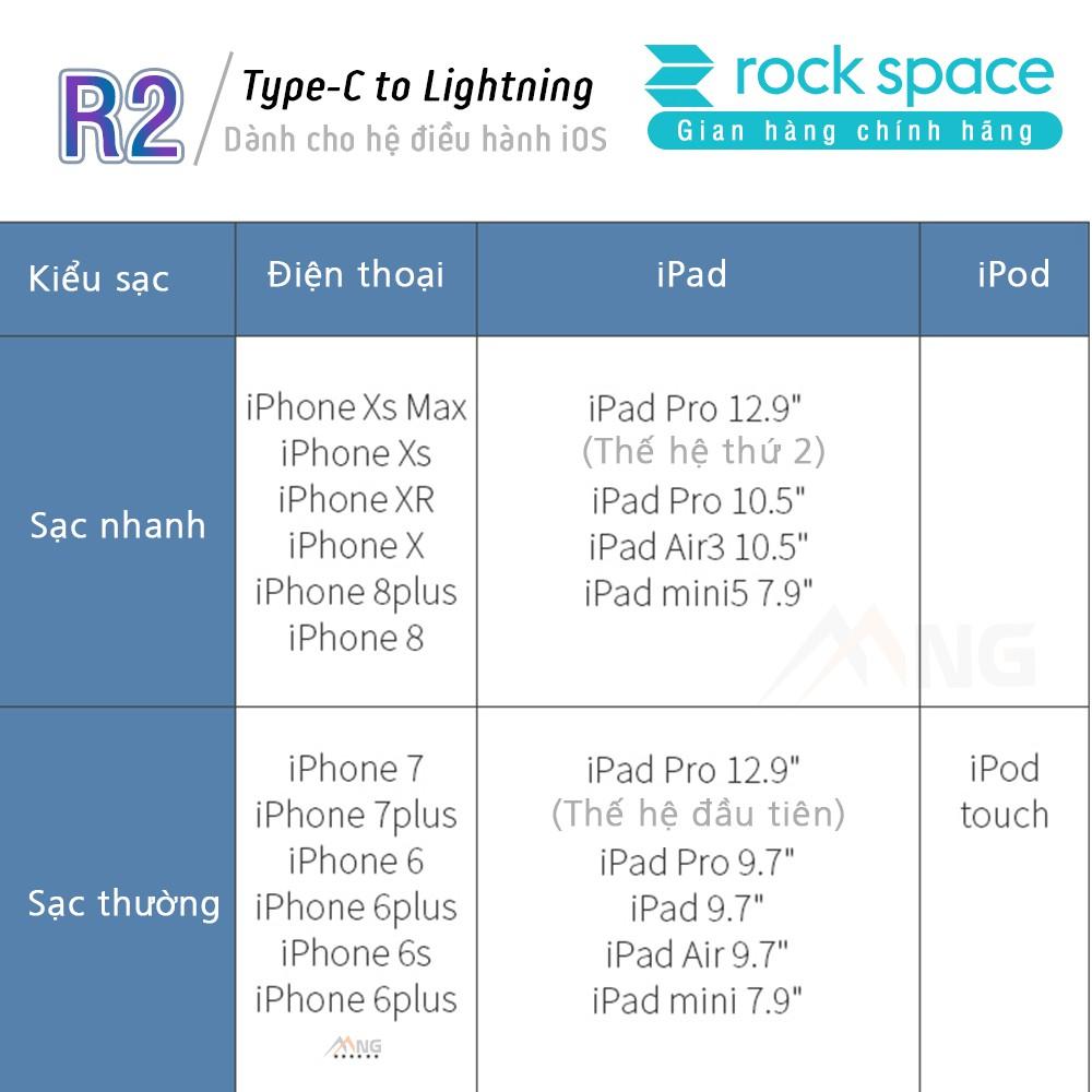 Dây Sạc iPh chính hãng Rockspace R2 cao cấp hỗ trợ chuẩn sạc nhanh PD ( power delivery) USB Power Delivery (USB PD) là một tiêu chuẩn sạc nhanh dành cho các thiết bị của Ap ple
