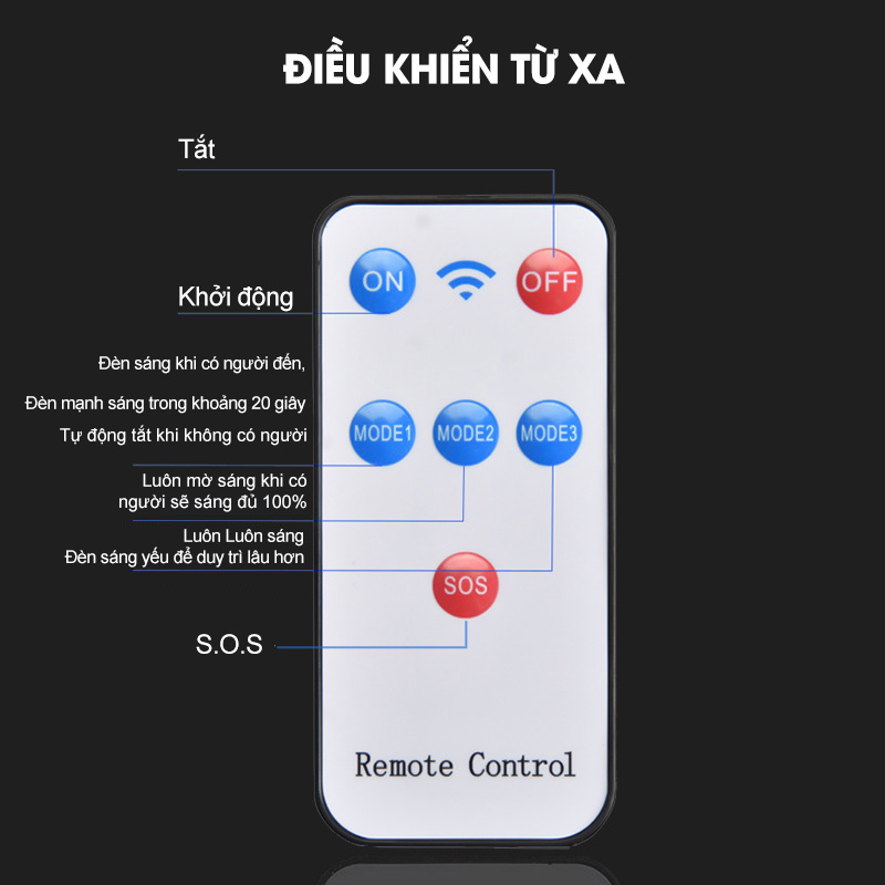 - Tự động bật khi trời tối, tắt khi trời sáng, có điều khiển từ xa.