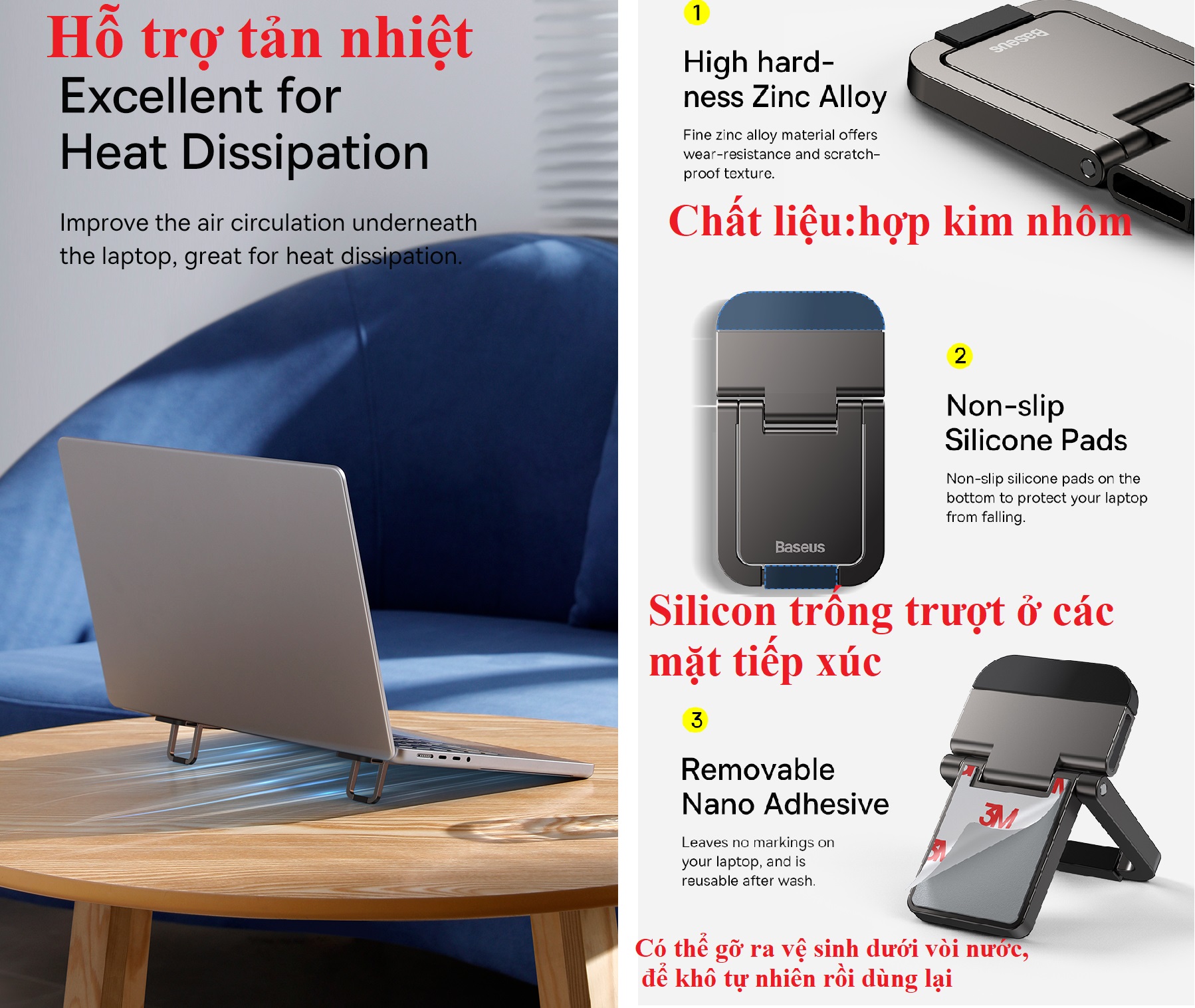 Đế Tản Nhiệt Đa Năng Siêu Nhỏ Gọn Cho Laptop Baseus Slim Laptop Kickstand #baseus