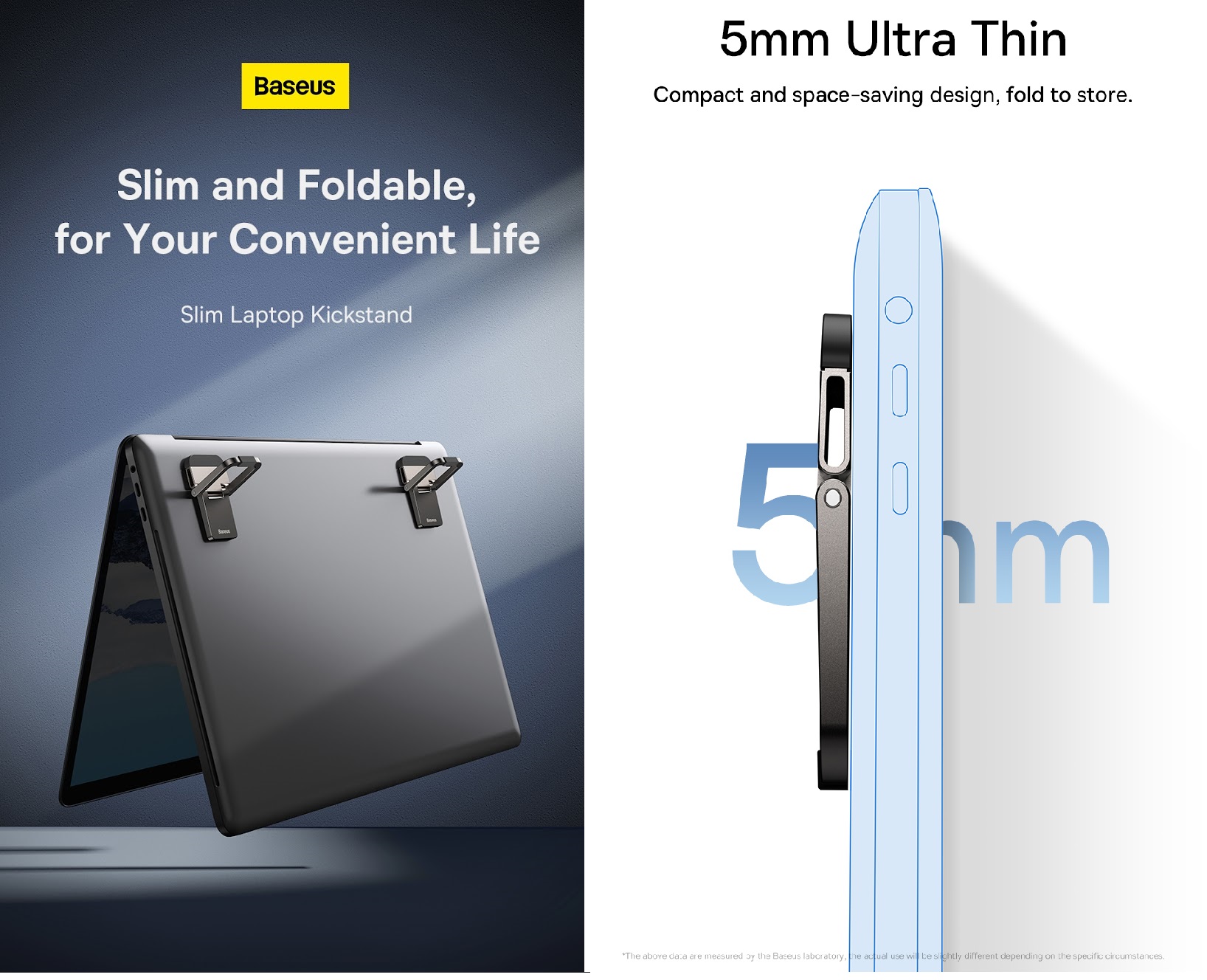 Đế Tản Nhiệt Đa Năng Siêu Nhỏ Gọn Cho Laptop/Mac-book Ba-se-us Slim Laptop Kickstand (2pcs) - Sở hữu kích thước siêu nhỏ, siêu mỏng chỉ 5mm tiết kiệm không gian, bỏ ba lô cực kỳ