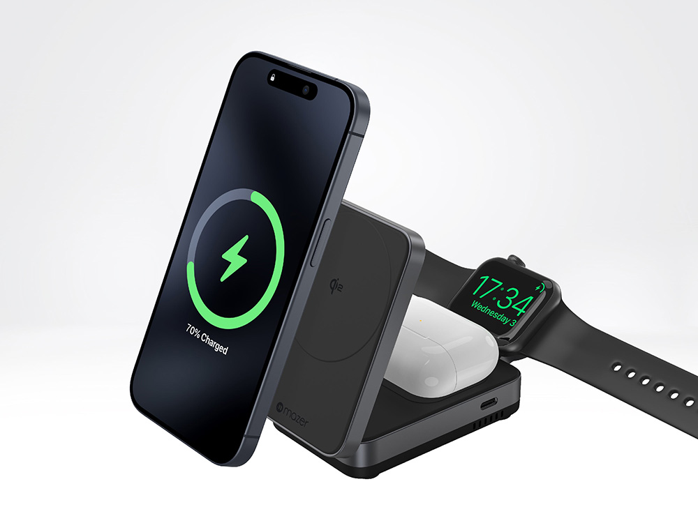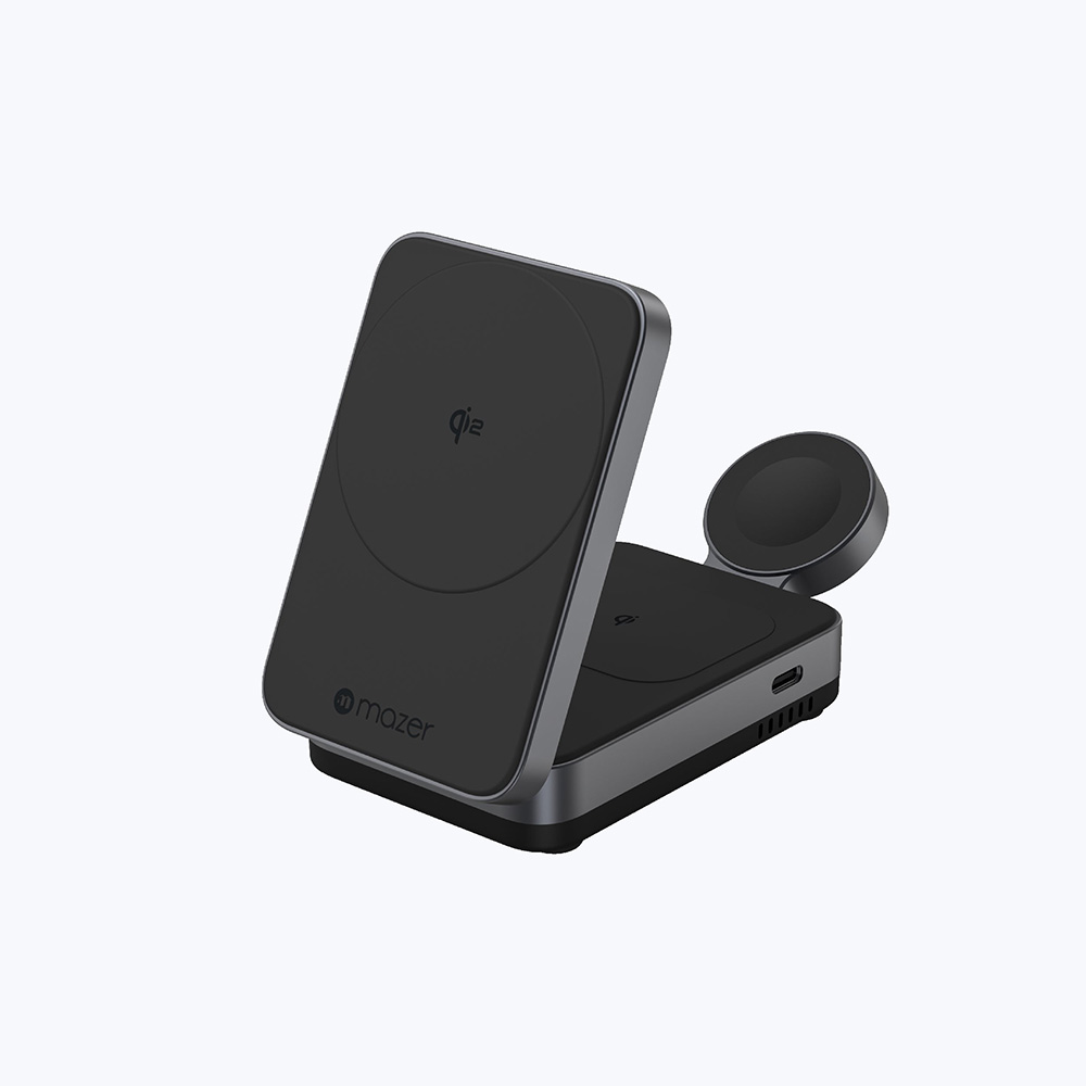 Đế Sạc Không Dây 3 Trong 1 Mazer MagFold Trio QI2 15W Sạc Được Cho Điện Thoại, Tai Nghe, Đồng Hồ Gấp Gọn Tiện Mang Theo