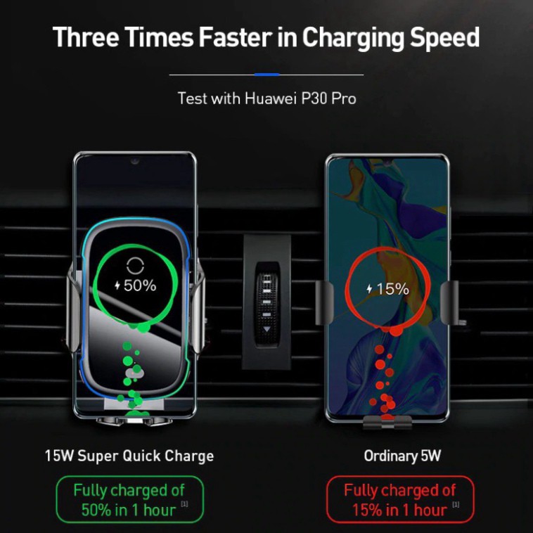 ✨Đế Sạc Không Dây Trên Xe Hơi Siêu Nhanh Công Suất 15W Có Thể Gắn Cửa Gió Hoặc Hút Chân Kính Chính Hãng Baseus