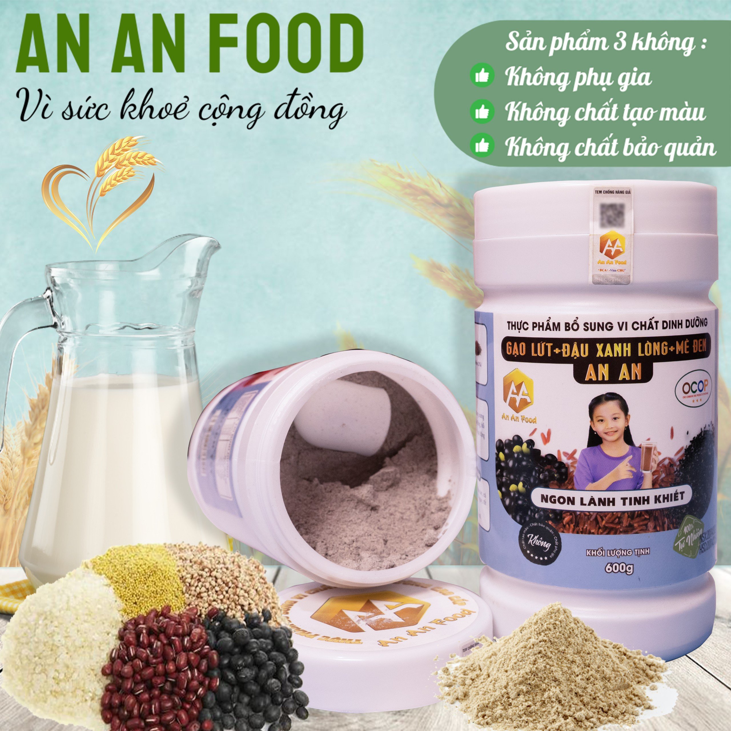 BỘT GẠO LỨT MÈ ĐEN NẾP CẨM MỘC LAN HEALTHY Thông tin sản phẩm - Tên sản phẩm: Bột gạo lứt mè đen nếp cẩm Mộc Lan - Xuất xứ: Việt Nam - Thành