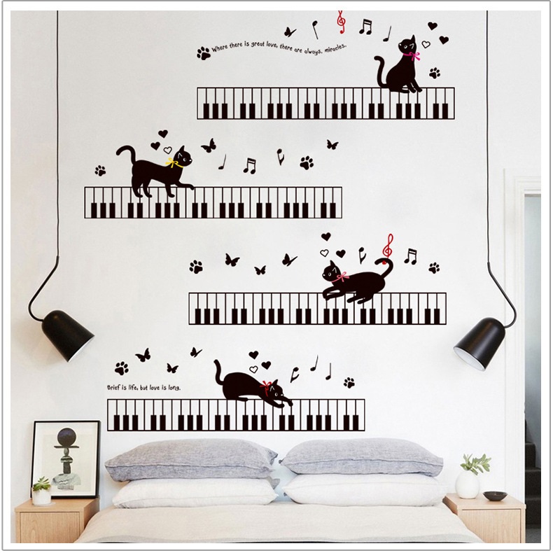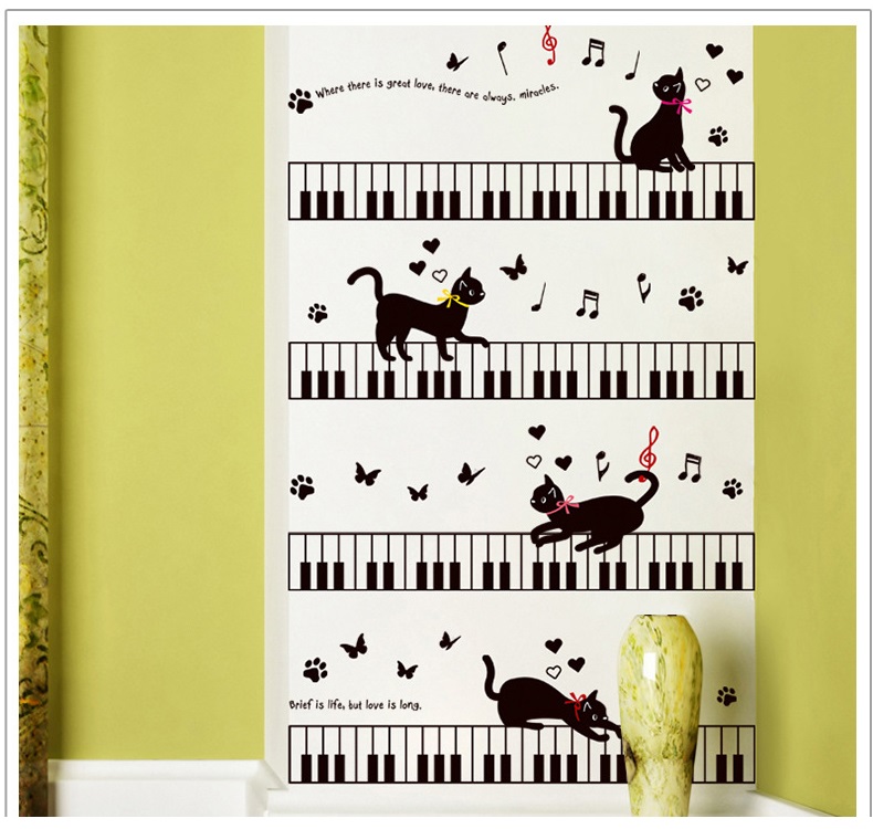 Decal dán tường Mèo đen dễ thương có màu sắc tươi sáng, hình ảnh 3D, decal sẽ mang lại hình ảnh những chú mèo quậy phá, dễ thương tạo cảm giác thư giản, nhẹ nhàng, thoải mái cho căn phòng của bạn.