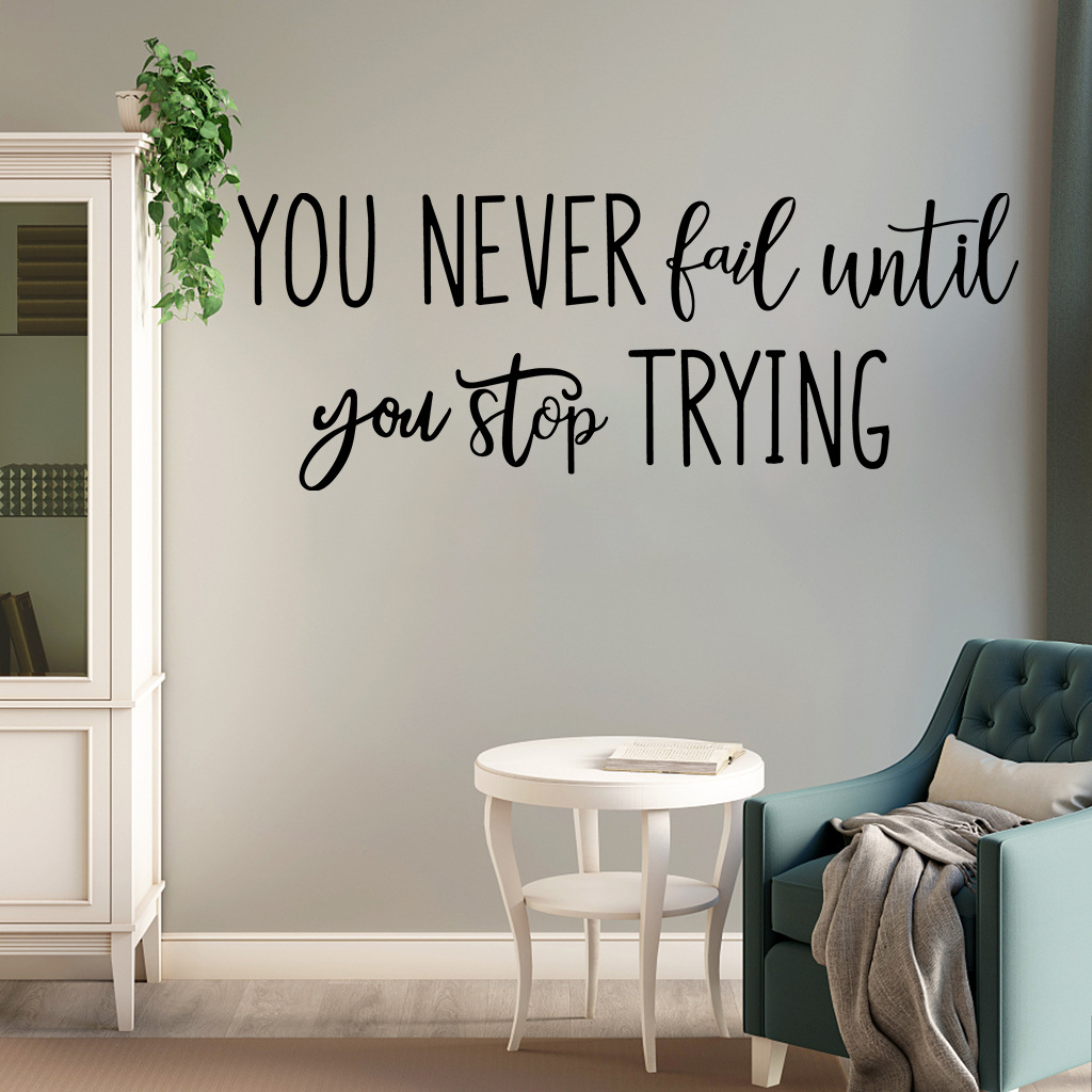 Decal dán tường tiếng anh tạo động lực ý nghĩa với câu Quote : You never fail until you stop trying. Decal cao cấp dễ dàng dán ngay tại nhà !