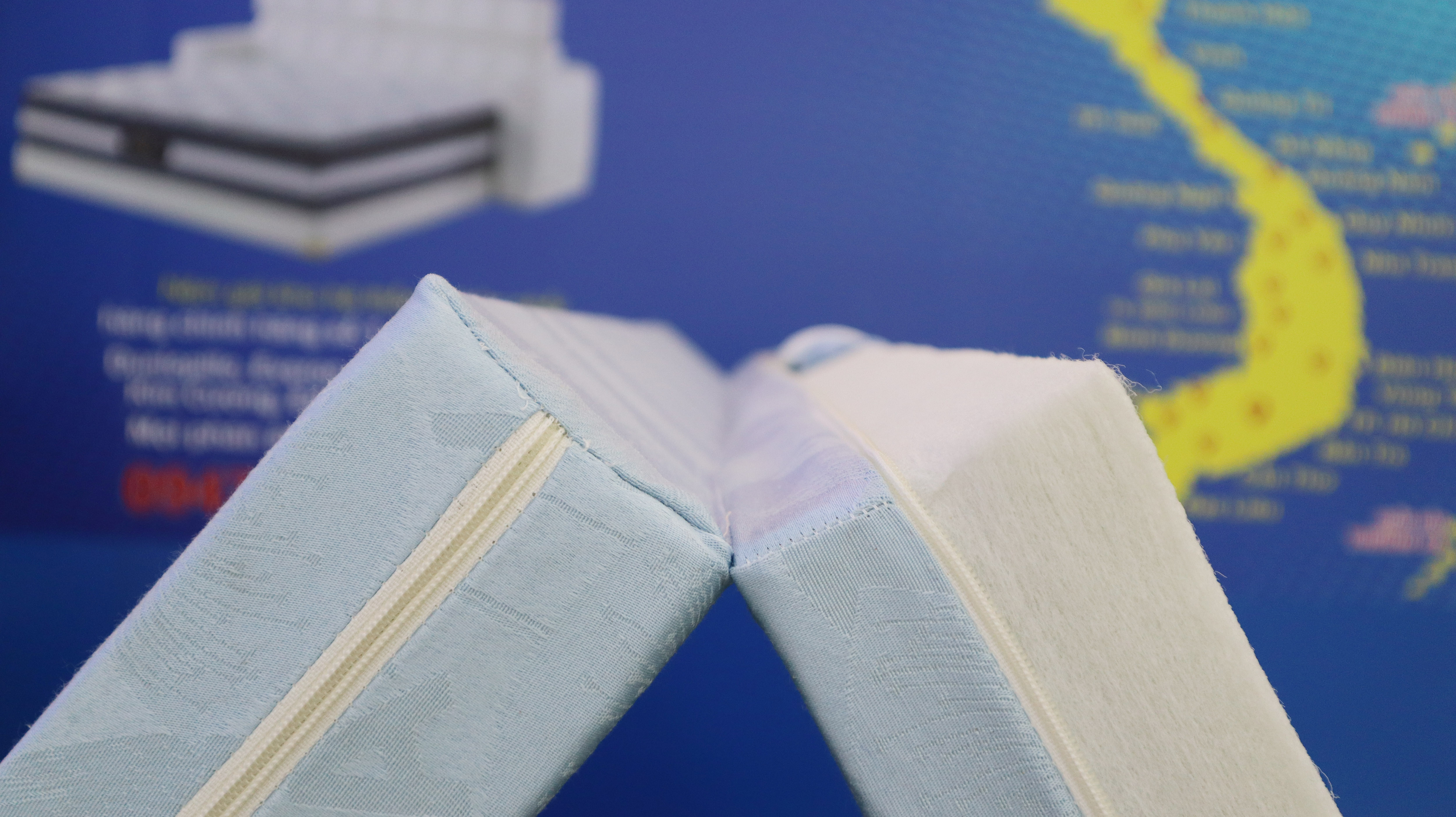 Chất liệu áo bọc đệm: Lớp vỏ đệm Nano gồm 4 lớp được thiết kế đặc biệt trên công nghệ Nano Bạc gồm các lớp: + Vải gấm CPS cao cấp chống cháy + Mút