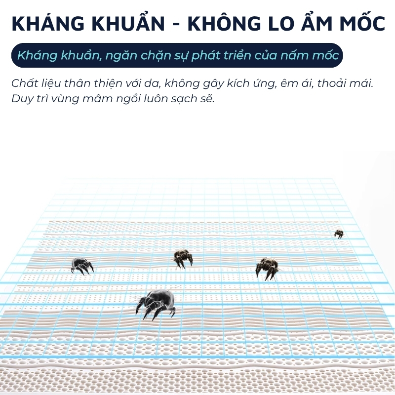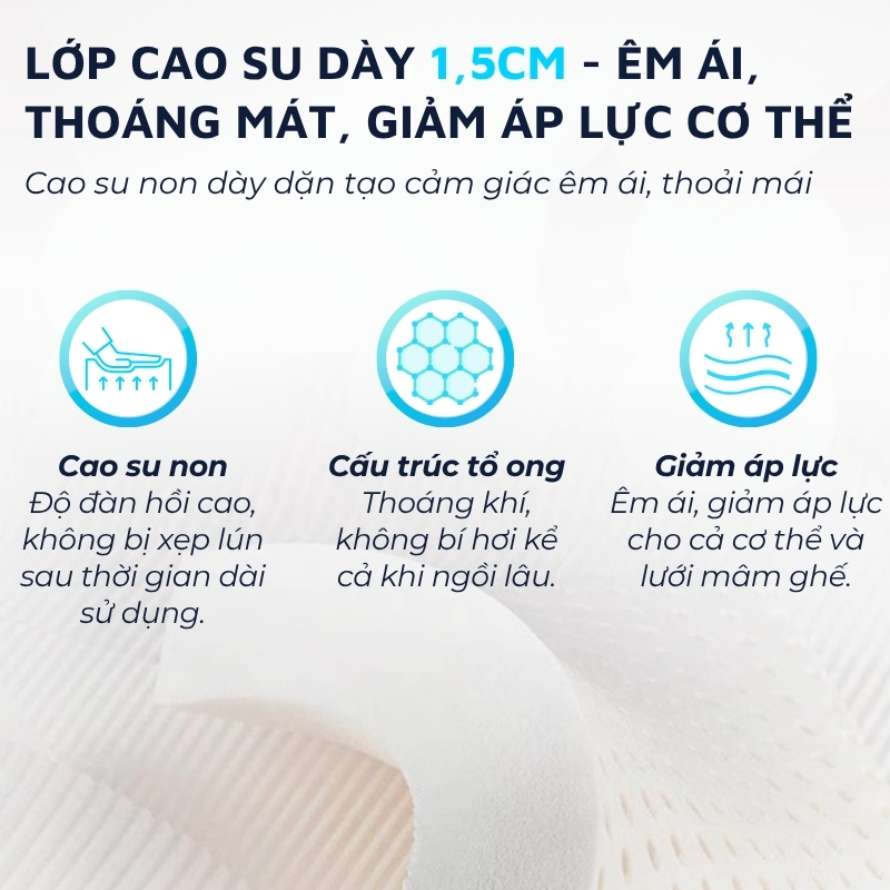 – Lõi cao su non tổ ong đàn hồi tốt, nâng đỡ đều và thoáng khí