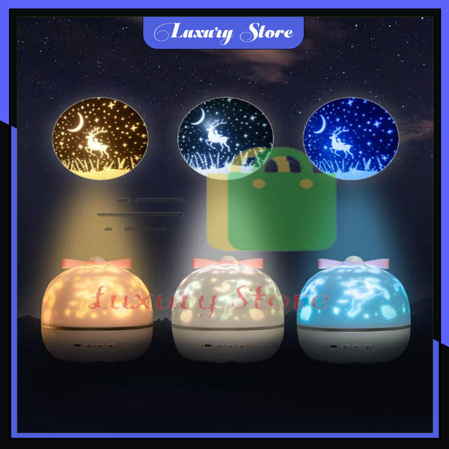 Đèn ngủ để bàn chiếu sao 3d, đèn ngủ ngàn sao chiếu hình decor xoay tự động phát nhạc TUHUHOUSE