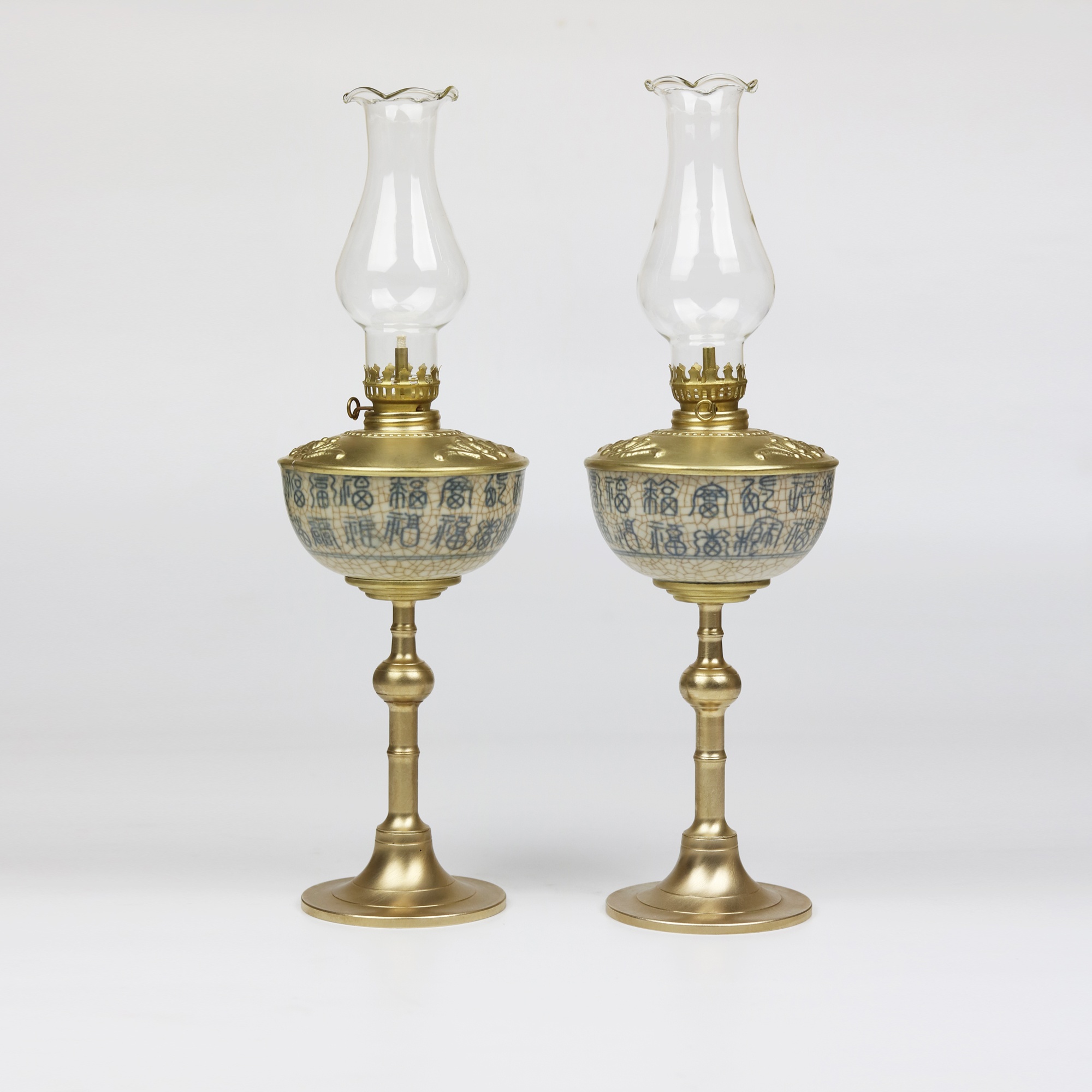 Đèn dầu men rạn chân đồng cao 37cm - Dáng đèn bầu