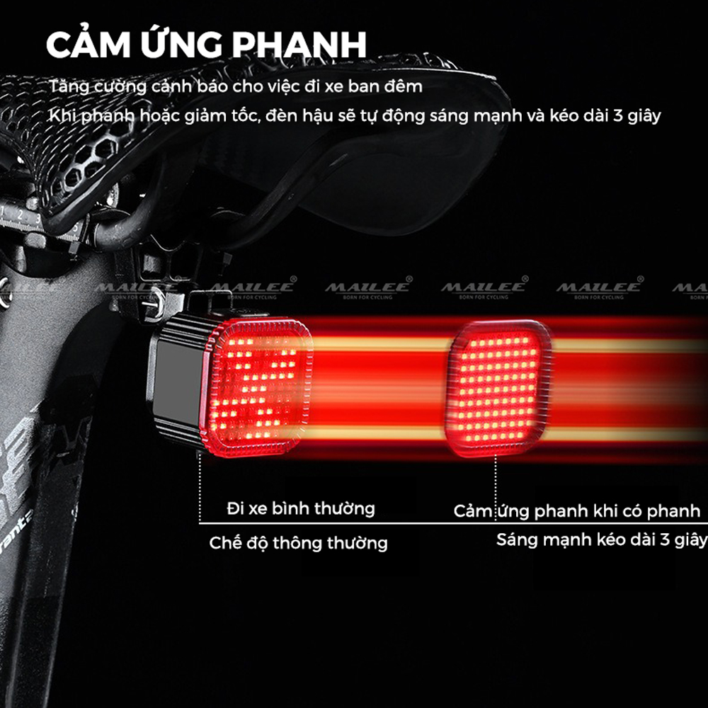 Đèn Đuôi Xe Đạp Thông Minh Cảm Biến Phanh LD-09, 22 bóng LED, tự động tắt khi di chuyển, thời lượng pin lên đến 35h - Mai Lee Đèn đuôi xe đạp thông minh cảm
