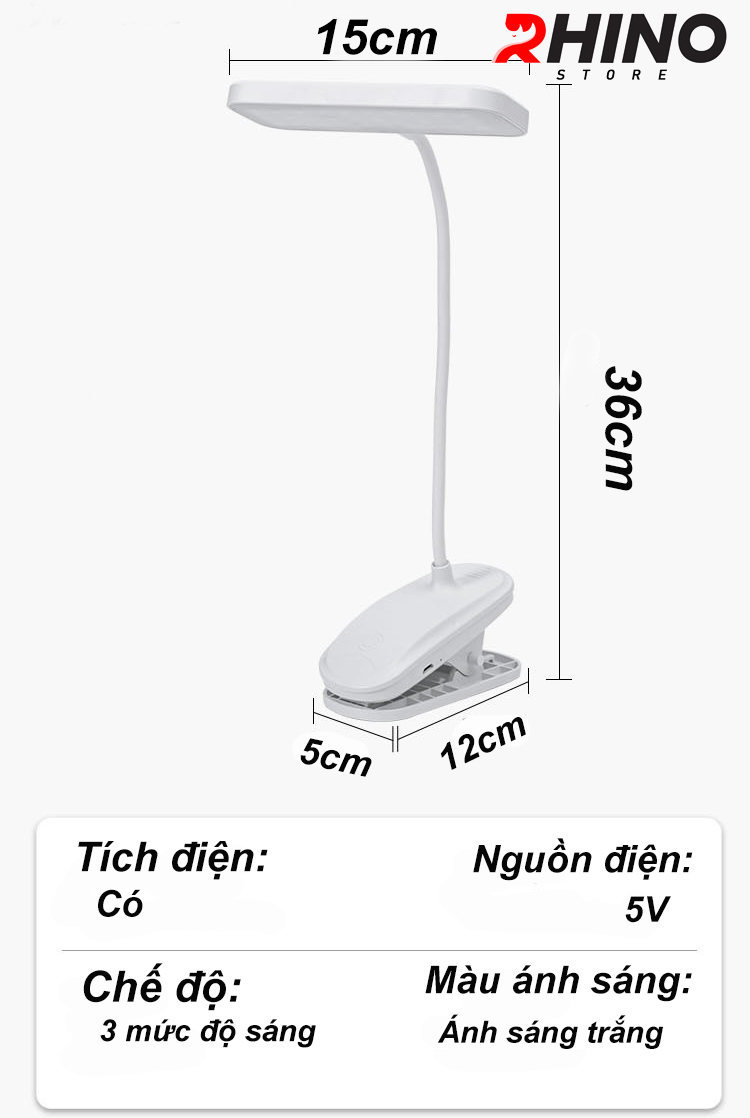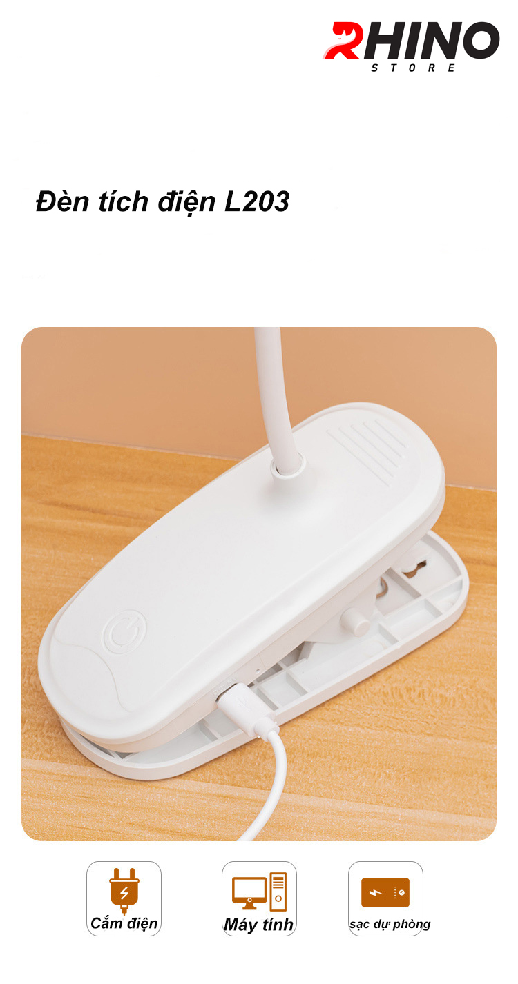 Mua tại TiktokĐèn học LED ánh sáng trắng gắn kẹp tiện lợi bảo vệ mắt chống cận cảm ứng Rhino L203, tích điện đa năng làm việc, để bàn học, đọc sách, đèn ngủ nhiều chế độ sáng, đèn led chính hãng
