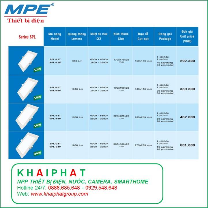 ✨ĐÈN LED ÂM TRẦN DOWNLIGHT PANEL VUÔNG MPE 6W, 9W, 12W, 15W, 18W, 24W SPL TRẮNG, VÀNG GIÁ RẺ - KHẢI PHÁT ELECTRIC