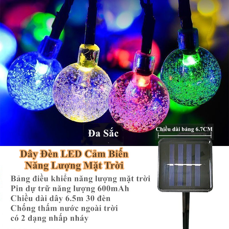 ✨Đèn Led Cảm Biến Năng Lượng Mặt Trời 6,5M 30 Đèn Chống Thấm Nước Treo Trang Trí Gồm 2 Màu Vàng Ấm Và Đa Sắc