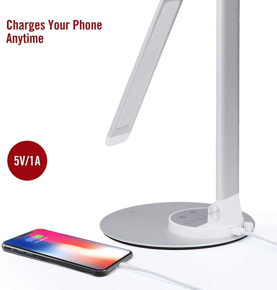 Đèn LED để bàn Taotronics TT-DL22 dùng điện giải rộng, cắm trực tiếp điện 220V rất tiện lợi. Đèn có thêm cổng USB Ismart để sạc điện thoại tại bàn với cổng USB 5V/1A, nó cũng tương thích với hầu hết các điện thoại thông minh và đầu đọc USB trên thị trường.