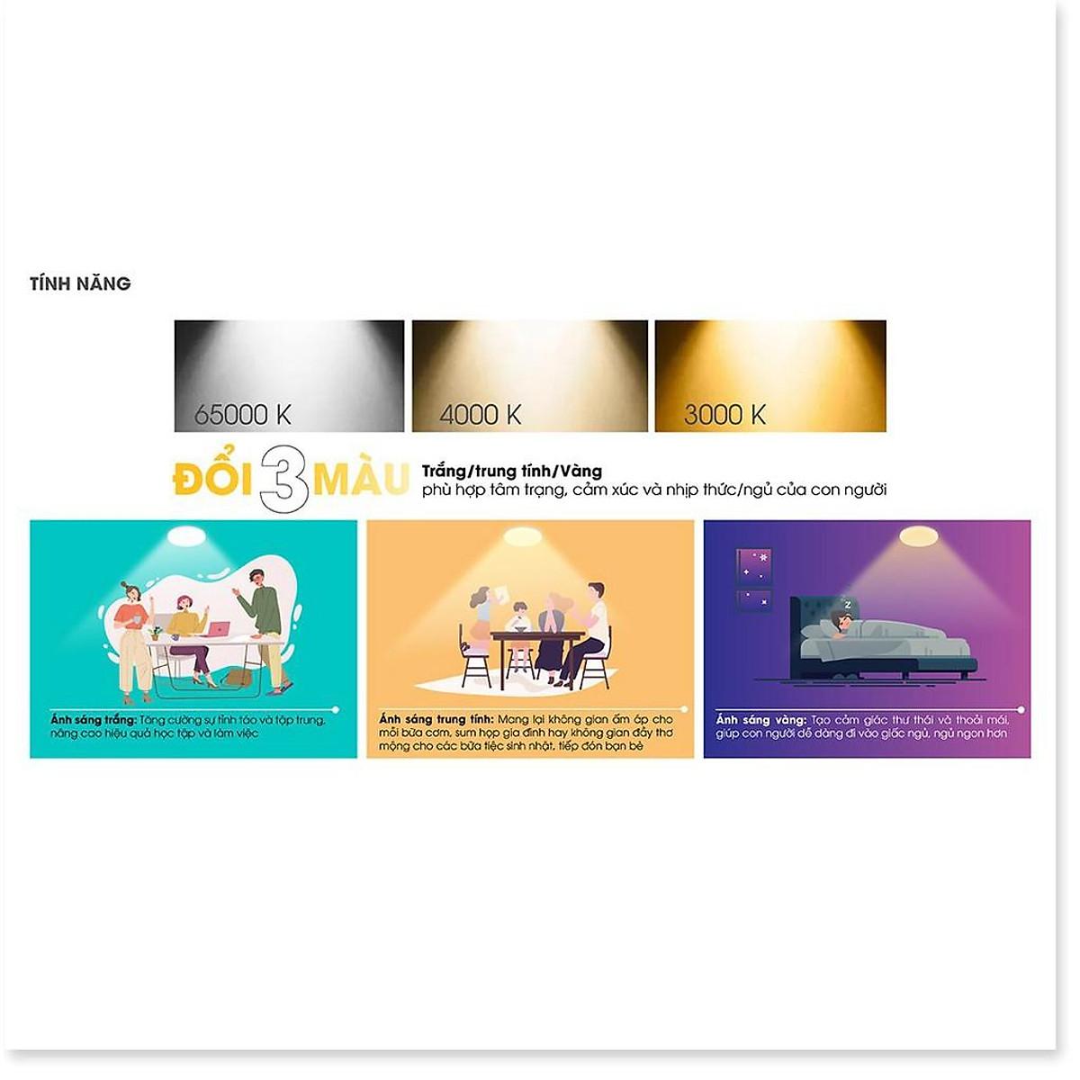 Model: D AT04L 110/9W Công suất: 9W Điên áp: 220V/50Hz Nhiệt độ màu: 6500K/3000K Quang thông: 650 lm Kích thước (ØxH): (138x50)mm ĐK lỗ khoét trần: 115mm *** ĐẶC TÍNH SẢN PHẨM Sử dụng