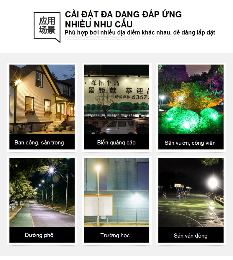 - Chiếu sáng công viên, sân trường, ngõ cổng;