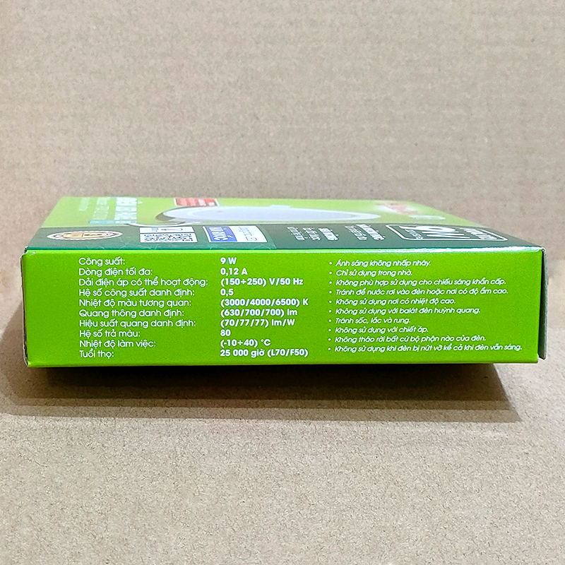Hệ số trả màu cao (CRI >= 80), ánh sáng trung thực tự nhiên. Đáp ứng tiêu chuẩn chiếu sáng Việt Nam TCVN 7114: 2008