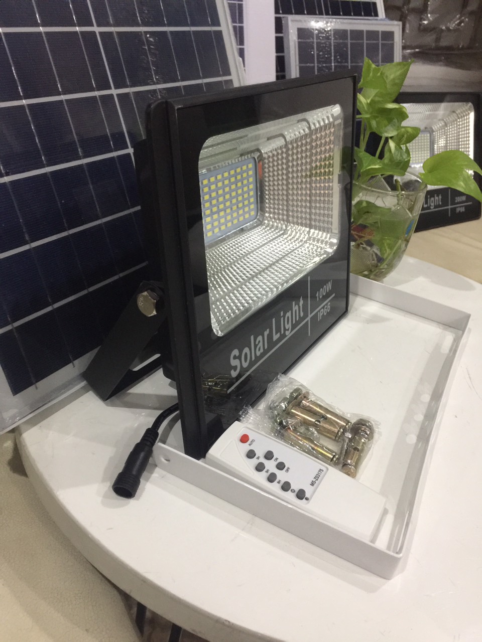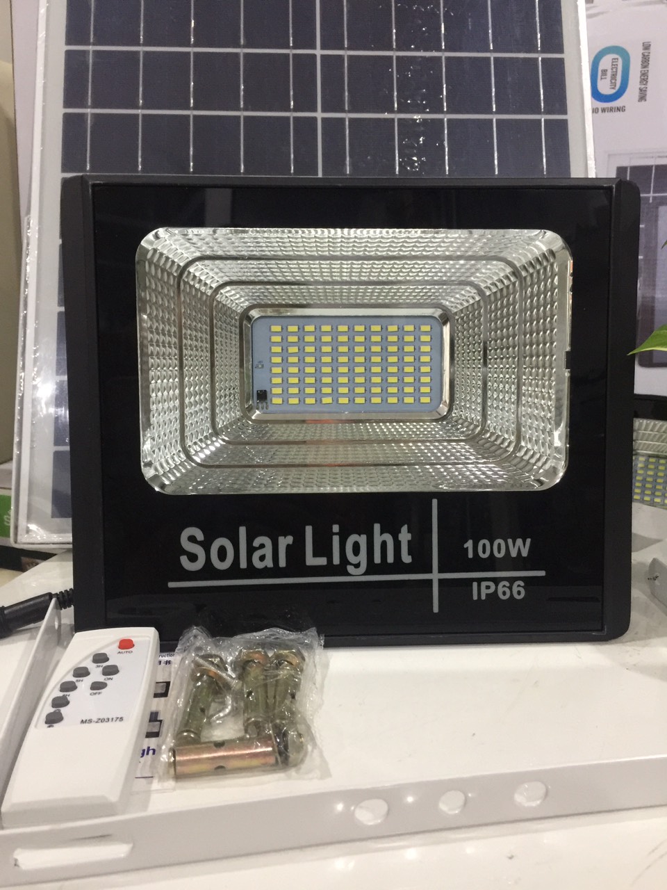 ĐÈN NĂNG LƯỢNG MẶT TRỜI 100w Giới thiệu sản phẩm Đèn LED năng lượng mặt trời 100w. Sử dụng chiếu sáng như đèn sân vườn cho biệt thự, đèn đường, đèn chiếu, đèn cho các khu đất rộng,