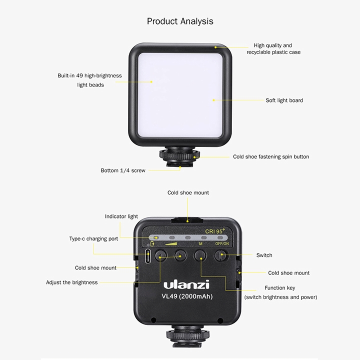 Đèn Led Ulanzi VL49 - hỗ trợ quay video và chụp hình linh hoạt