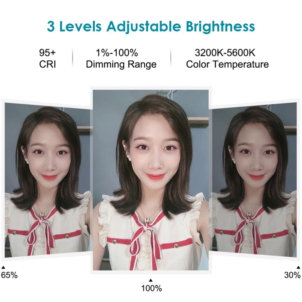 10 Levels adjustable brightness and 3 light colors changing(white/ warm white/ soft light), lights up your loveliness under different circumstances.