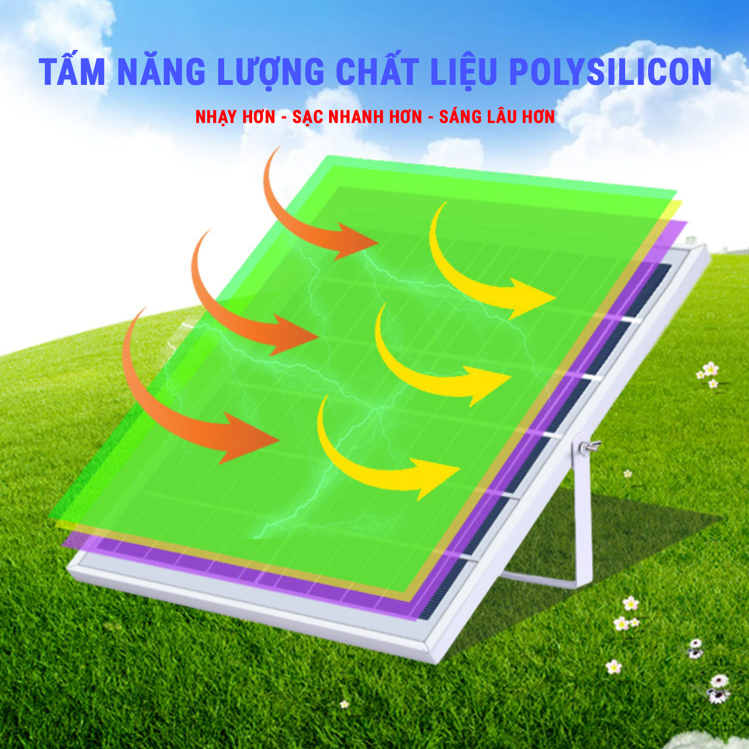 ĐÈN LED PHA NĂNG LƯỢNG MẶT TRỜI SOLAR LIGHT. ️ ️ Chất liệu tấm pin poly tuổi thọ 10-12 năm ️ Kích thước pin (mm) 530 * 350 * 17 ️ thời gian chiếu sáng