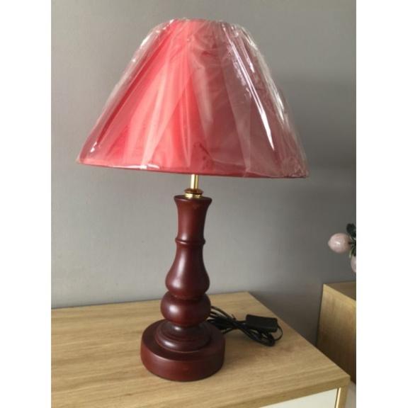 ✨Đèn ngủ để bàn gỗ tiện tinh xảo, chao vải đỏ thời thượng Khôi Nguyễn - B 065 DT