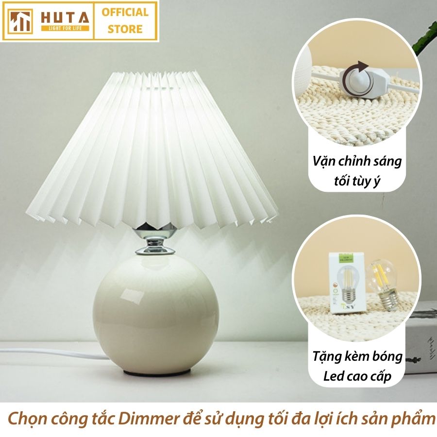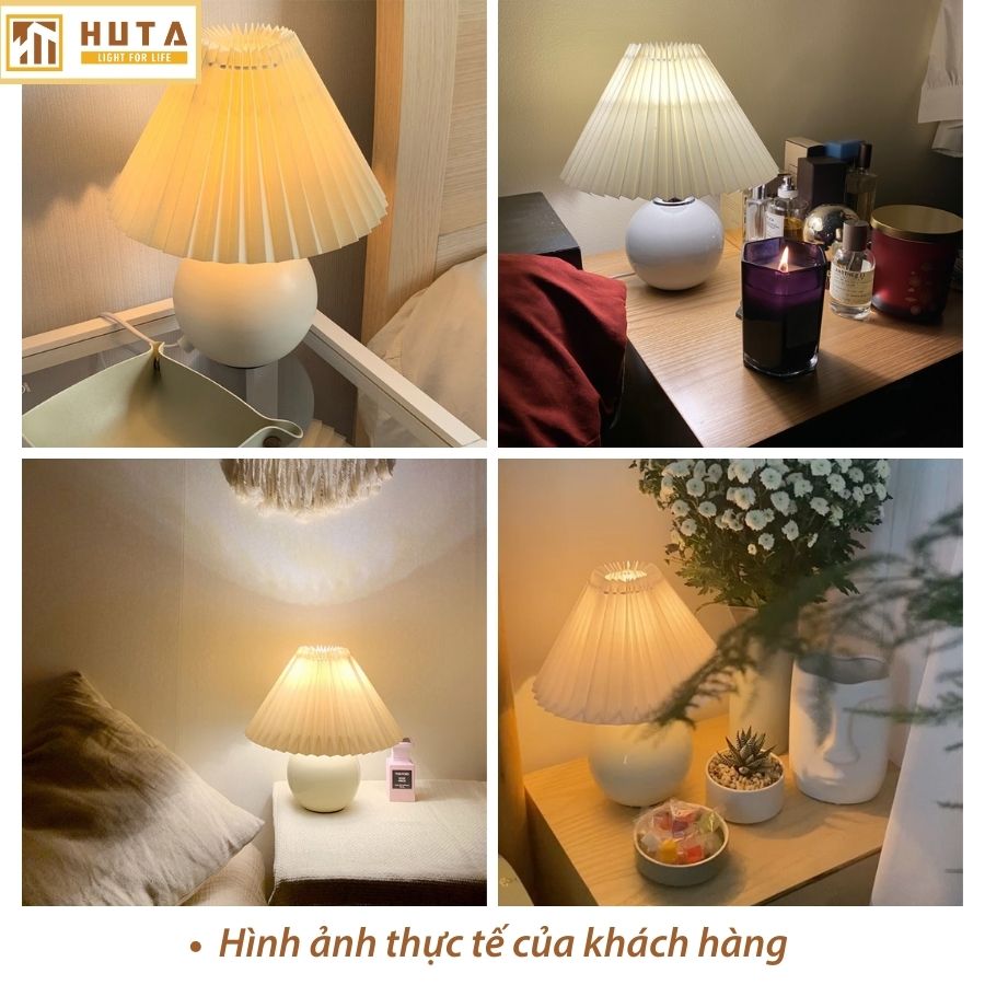 Đèn Ngủ Để Bàn Gốm Sứ Cao Cấp HUTA S8 Chao Xếp Ly Vintage Dễ Thương Decor Trang Trí Phòng Ngủ, Đọc Sách Đầu Giường, Điều chỉnh độ sáng, Đèn Vàng Bóng LED Tiết Kiệm
