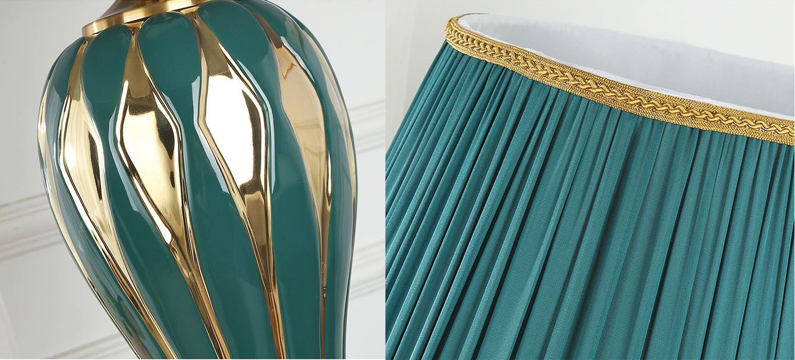 Chắc hẳn chúng ta đã quá quen thuộc với hình ảnh chiếc đèn bàn tạo điểm nhấn cho không gian phòng khách. Chúng còn là mẫu đèn trang trí được yêu thích nhất và cung cấp ánh sáng tốt cho những phút giây chúng ta thư giãn, nghỉ ngơi trong phòng ngủ. Phòng khách luôn được coi là bộ mặt của một căn nhà, vì vậy các vật dụng nhằm mục đích trang trí cũng được đầu tư kĩ lưỡng, tốn khá nhiều chi phí. Bên cạnh hệ thống chiếu sáng chính như đèn tuýp, đàn mâm, đèn âm trần,… chỉ với một chiếc đèn để bàn sẽ nâng tầm không gian. Bạn hãy đặt sản phẩm bên cạnh sofe, kệ tivi để hoàn thiện thêm vẻ đẹp tinh tế, sang trọng và đẳng cấp của căn phòng, cũng như toàn bộ ngôi nhà của gia đình. Thân đèn là bình gốm sứ cao cấp đã trải qua quá trình nung ở nhiệt độ cao đem đến chất lượng tuyệt hảo, trên đó được tô vẽ bằng những hoa văn, đường nét thật nhẹ nhàng nhưng cũng thật quyến rũ lòng người.  Kết hợp với chụp đèn màu xanh bằng vải lụa giúp chống thấm nước và đem đến ánh sáng êm dịu, ấm áp cho người sử dụng. Thiết kế không mang hoa văn sặc sỡ, không cầu kỳ rườm rà, màu sắc trang nhã thanh lịch thôi đã đủ làm nổi bật cả không gian. Đế đèn hợp kim được mạ lớp sơn tĩnh điện màu vàng Pháp không chỉ giúp sản phẩm tăng thêm vẻ sang trọng mà còn tạo độ bền cao hơn cho sản phẩm. Hãy đặt nó trong không gian phòng khách để tạo điểm nhấn sang trọng và ấm áp cho không gian. Hay như trên tủ đầu giường nơi phòng ngủ, sử dụng bóng đèn công suất nhỏ và ánh sáng vàng dịu nhẹ sẽ đem đến cảm giác thoải mái, thư thái từ đó nâng cao chất lượng giấc ngủ, cải thiện tinh thần. Ngoài ra, chúng có thể đặt trên bàn làm việc, bàn đọc sách trang hoàng không gian thềm ấn tượng. Cùng với đó là sử dụng bóng đèn ánh sáng trắng hoặc vàng có công suất lớn hơn trong phòng ngủ sẽ cung cấp nguồn ánh sáng cần thiết để làm việc, học tập có hiệu quả. Ngoài ra, bạn muốn tìm cho phòng ngủ yên tĩnh của ra đình mẫu đèn có ánh sáng êm dịu, thoải mái bên cạnh nguồn sáng chính. đèn bàn mang tới ánh sáng ổn định, ấm áp, dịu nhẹ, giúp chúng ta thêm ngon giấc. Do đó nhu cầu sử dụng đèn để bàn tròng phòng ngủ ngày càng tăng cao. Có thể coi đèn bàn trang trí là một trong những thiết bị chiếu sáng phù hợp trong rất nhiều không gian của gia đình. Với ánh sáng tập trung không chỉ làm nổi bật không gian xung quanh mà còn mang đến ánh sáng thích hợp cho việc học tập, nghỉ ngơi, làm việc.