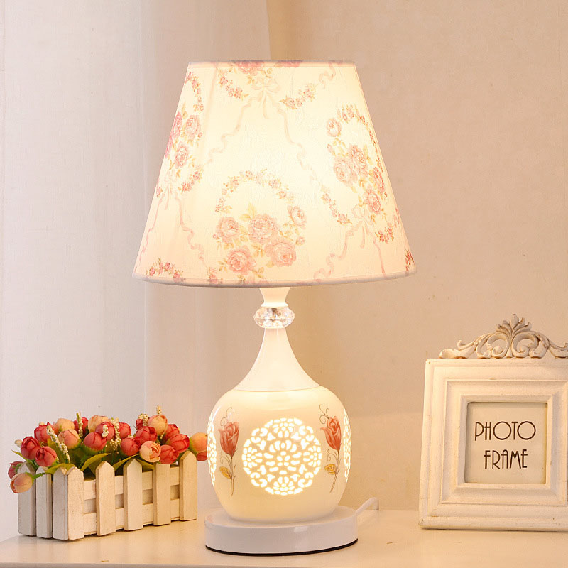 Đèn Ngủ Để Bàn Gốm Sứ Cao Cấp HUTA S8 Chao Xếp Ly Vintage Dễ Thương Decor Trang Trí Phòng Ngủ, Đọc Sách Đầu Giường, Điều chỉnh độ sáng, Đèn Vàng Bóng LED Tiết Kiệm