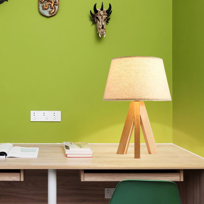 Chất liệu : Thân đèn gỗ, chao vải kẻ chỉ Bóng đèn : Đui E27 Công suất : 3W Màu ánh sáng : Ánh sáng vàng Đèn bàn để trang trí bàn nhỏ Size :