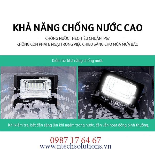 ĐÈN LED SOLAR LIGHT 40W - JD8840L • Kích thước: 25.5 × 22 × 6 cm • Công suất: 40w • Số lượng chip: 110 Chip Led • Tính năng: Cảm biến ánh sáng, Điều