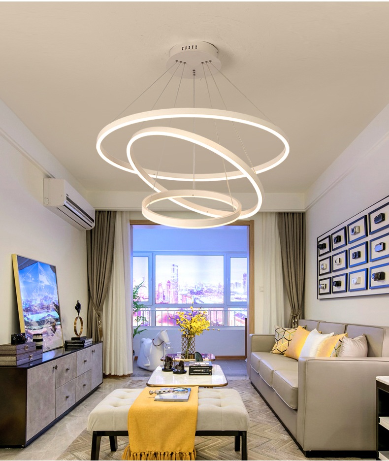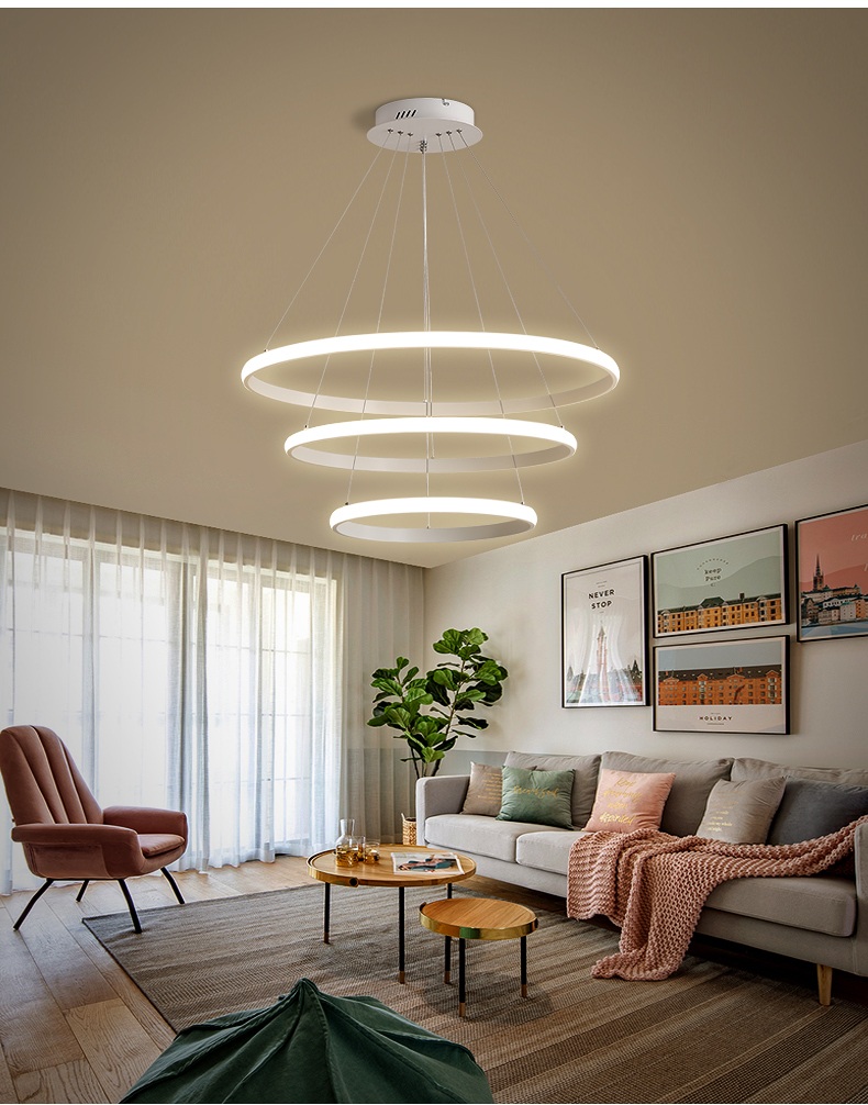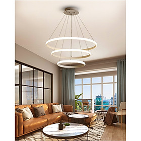 Đèn thả 3 vòng với phong cách thiết kế đơn giản nhưng sẽ giúp nổi bật không gian sống của gia đình bạn. Đèn thả 3 vòng là mẫu đèn thả mẫu trắng thả được ưu chuộng nhất hiện nay, bởi giá thành hợp lý với khả năng tùy biến nhiều kiểu thả khác nhau, sẽ phù hợp với mọi không gian hiện đại. Đèn có điều khiển điều chỉnh chế độ ánh sáng từ xa vô cùng tiện dụng Thiết kế sang trọng, hiện đại, thích hợp với nhiều không gian và phong cách nội thất. Với điều khiển xa thông minh đèn có thể để chế độ ngủ đêm phục vụ cho nhu cầu xem phim, nghe ca nhạc Chức năng thay đổi 03 ánh sáng Trắng 6000K, Vàng 3000K và Trung tính 4500K Chức năng DIMMABLE: Tăng giảm ánh sáng của từng ánh sáng Có cấu tạo chip led công nghệ cao giúp đèn phát huy được ánh sáng tối đa, ánh sáng thu được chân thực như ánh sáng ban ngày. Tiết kiệm 80% điện năng.   Đèn thả với thiết kế vô cùng bắt mắt, bạn có thể thay đổi kiểu dáng bằng cách điều chỉnh độ dài các dây thả. Đèn LED 95w độ sáng rất tốt, đảm bảo khả năng chiếu sáng cao. Chiếc đèn này rất phù hợp cho những phòng khách, phòng ăn, quán ăn hiện đại, sang trọng.