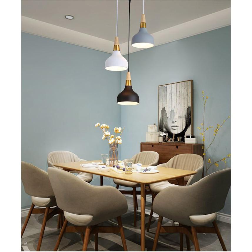 Đèn thả trần trang trí RAKAN cao cấp kèm bóng LED chuyên dụng Để không gian phòng ăn của gia đình trở nên lung linh và ấm áp hơn thì hiện nay, rất nhiều người đã nhờ đến sự trợ giúp của những mẫu đèn trang trí. Với mỗi không gian khác nhau thì việc lựa chọn đèn trang trí là không giống nhau bởi bạn cần lựa chọn sao cho phù hợp với không gian cũng như đảm bảo được khả năng chiếu sáng cần thiết cho quá trình sinh hoạt. Hiện nay có 2 dòng sản phẩm đèn trang trí phòng ăn được sử dụng phổ biến trong không gian nội thất phòng ăn đó là đèn thả và đèn chùm. Đèn thả trần kiểu dáng hiện đại là hàng nhập khẩu cao cấp với chất lượng được đảm bảo theo tiêu chuẩn Châu Âu. Chất liệu nhôm lựa chọn chế tạo nên sản phẩm có ưu điểm vượt trội về khả năng chống hao mòn, ôxy hóa, giữ sản phẩm lâu bền cùng thời gian. Công nghệ chiếu sáng hiện đại của bóng đèn led giúp cho đèn bàn ăn đẹp cung cấp ánh sáng đều màu, ổn định trng khoảng diện tích từ 10-15m2 mà không bị chập chờn, chớp nháy gây ảnh hưởng đến thị giác người nhìn. Hơn nữa, chúng còn làm nổi bật lên vẻ đẹp của các món ăn từ đó thu hút các thành viên trong gia đình quây quần lại thưởng thức. THÔNG TIN KÍCH THƯỚC: 21*15 (cm) Chân đèn bằng kim loại sơn tĩnh điện, choá đèn bằng nhôm hình phễu có tác dụng hội tụ ánh sáng cao ,thường được sử dụng vào vị trí bàn ăn Quý khách có thể chọn loại đế tròn hoặc đế ngang tùy theo không gian Sử dụng đui E27 , dễ thay thế bóng ,thay đổi công suất phù hợp cho từng vị trí láp (bàn ăn cần công suất lớn hơn đối với các vị trí khác) Bộ đèn đã bao gồm bóng LED chuyên dụng