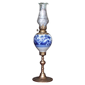 hất liệu: gốm sứ cao cấp Bát Tràng Họa tiết: Vẽ thủ công bằng tay, nghệ thuật tinh xảo Thiết kế: tinh tế, cổ truyền Loại men: Men lam cổ Đèn dầu là sản phẩm