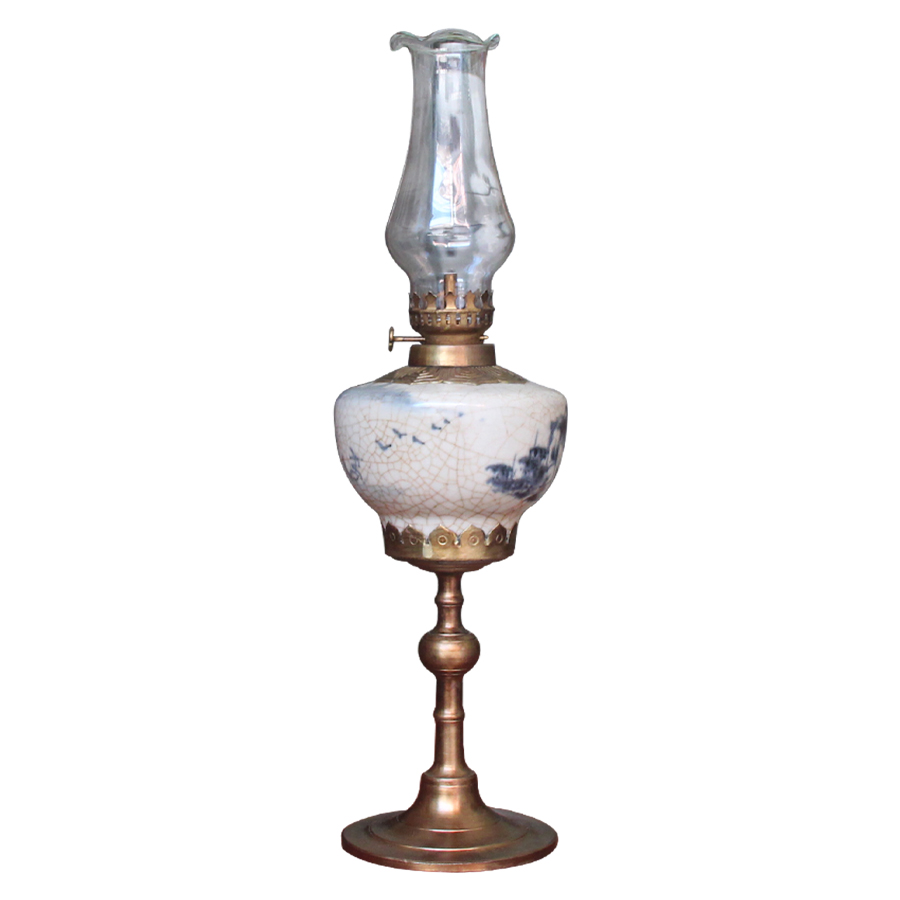 Sản phẩm: Đèn dầu men rạn vẽ chữ nho chân đồng đế bẹt chính hãng Bát Tràng Chất liệu: gốm sứ cao cấp Bát Tràng Họa tiết: Vẽ thủ công bằng tay, nghệ thuật tinh