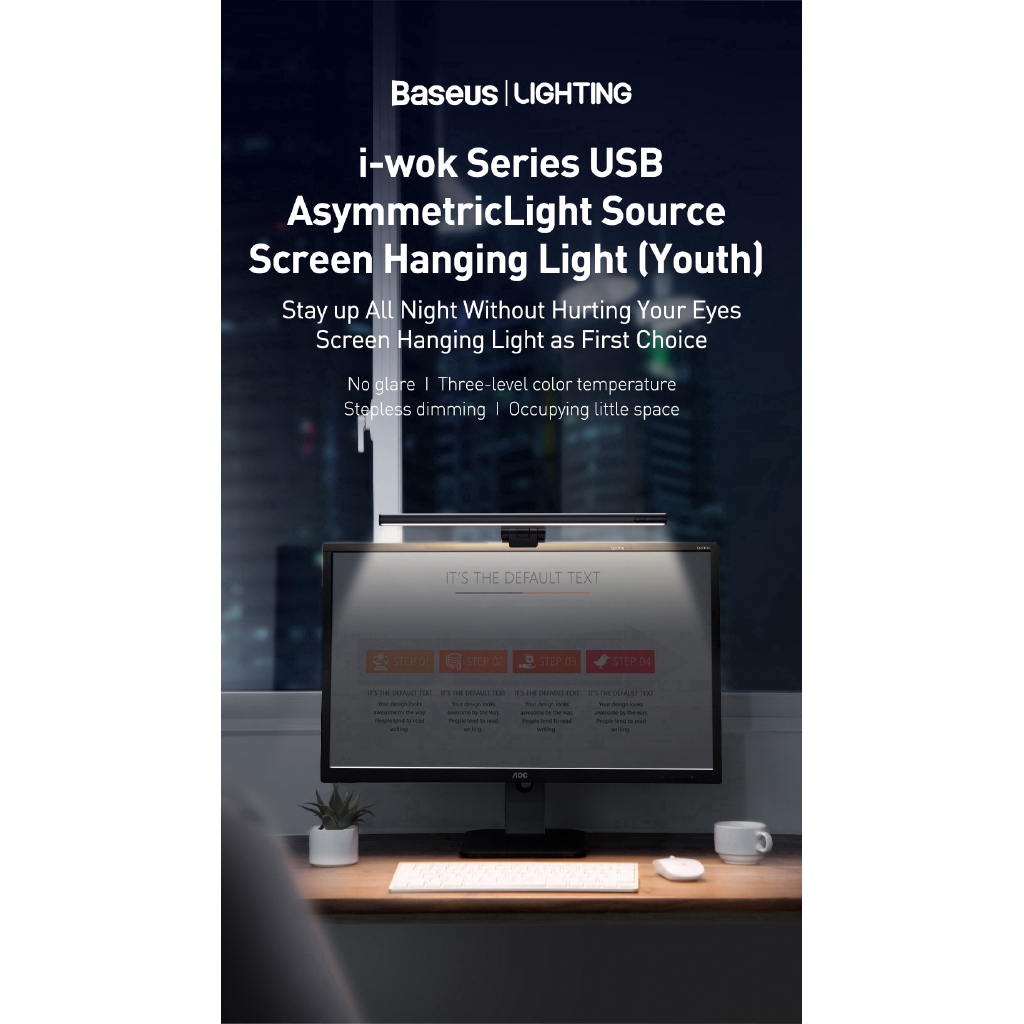 ✨Đèn treo màn hình bảo vệ mắt Baseus i-Work Series (3 Light Mode, Anti Bluelight, USB Stepless Dimming Screen Hanging Light, New Model) - DGIWK-B02 - Hàng chính hãng