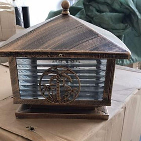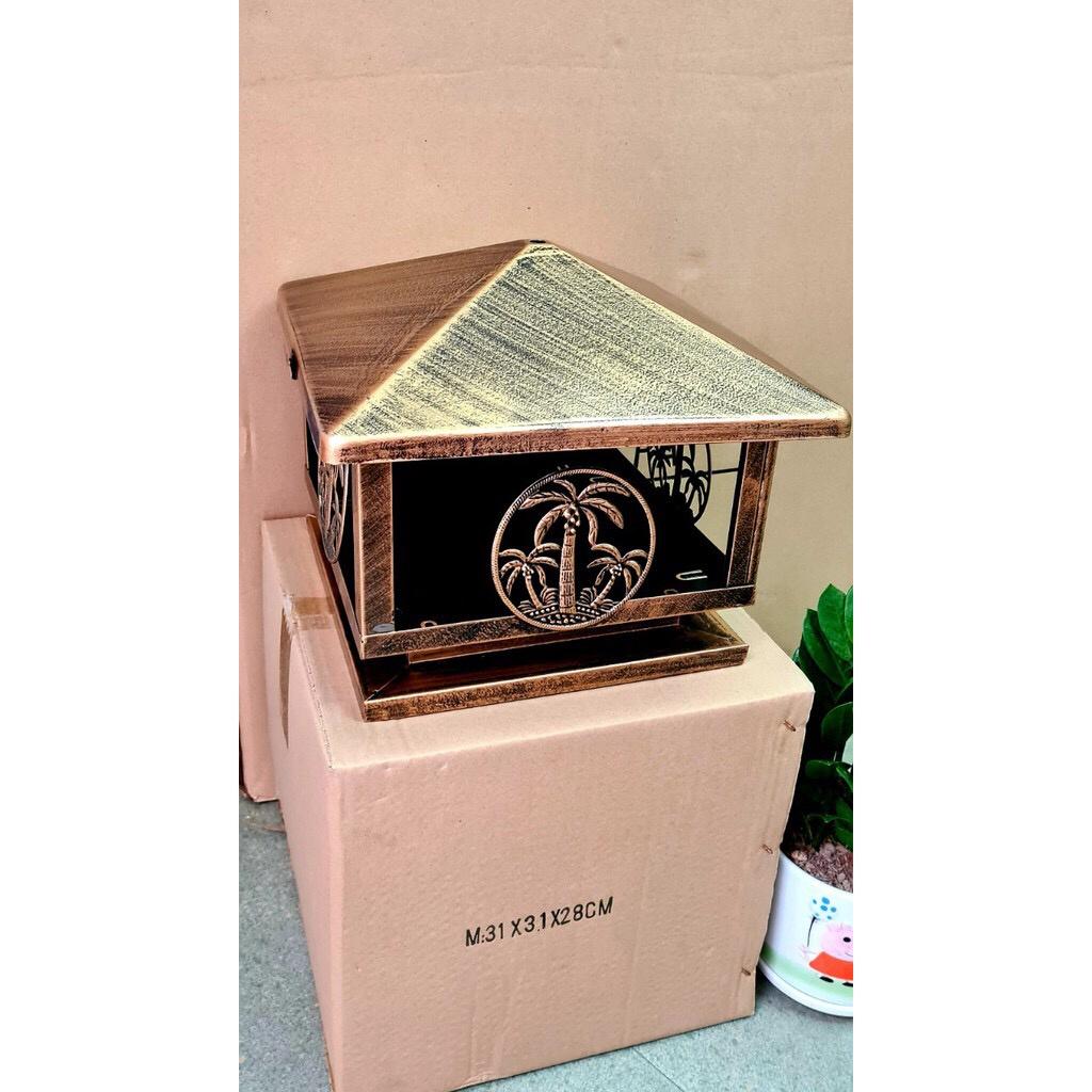 hông tin sản phẩm: kích thước : 30cm D25cm D20cm Đèn được làm bằng thép sơn chống gỉ Đèn cổng trang trí hiện nay thuộc một trong những mẫu đèn trang trí ngoại thất được nhiều khách hàng lựa chọn và trở thành một xu hướng tiết kiệm điện năng mới. Thiết kế của đèn rất đa dạng với nhiều kiểu dáng mẫu mã cũng như những đèn trụ cổng sử dụng điện năng khác. Vị Trí Lắp Đèn Lắp đèn trang trí chiếu sáng ở cổng chính của ngôi nhà. Lắp đèn trụ ở tường rào xung quanh. Lắp đèn trụ ở cầu thang, lan can ở những ngôi nhà có thiết kế ở ngoài trời. Lắp các trụ hướng dẫn lỗi đi trong sân vườn hay lối đi vào nhà chính,…