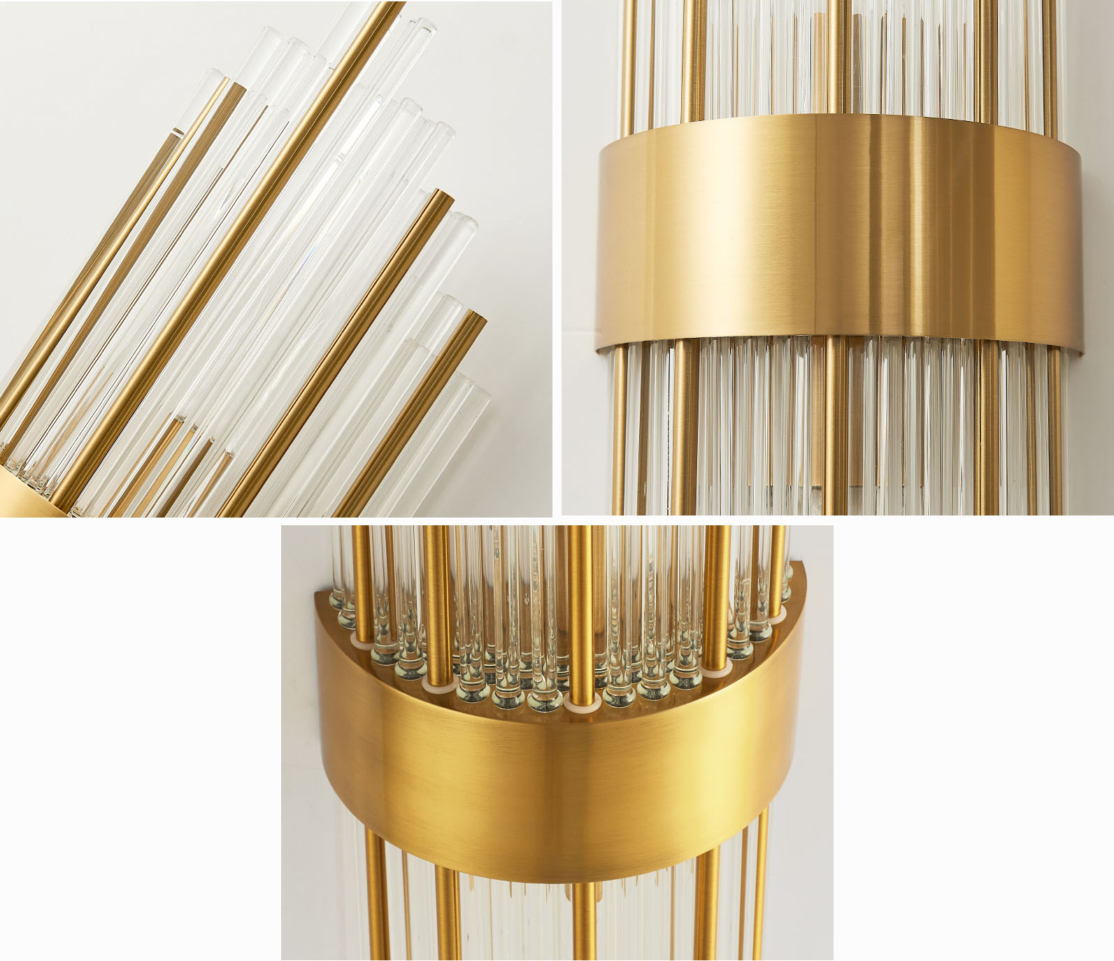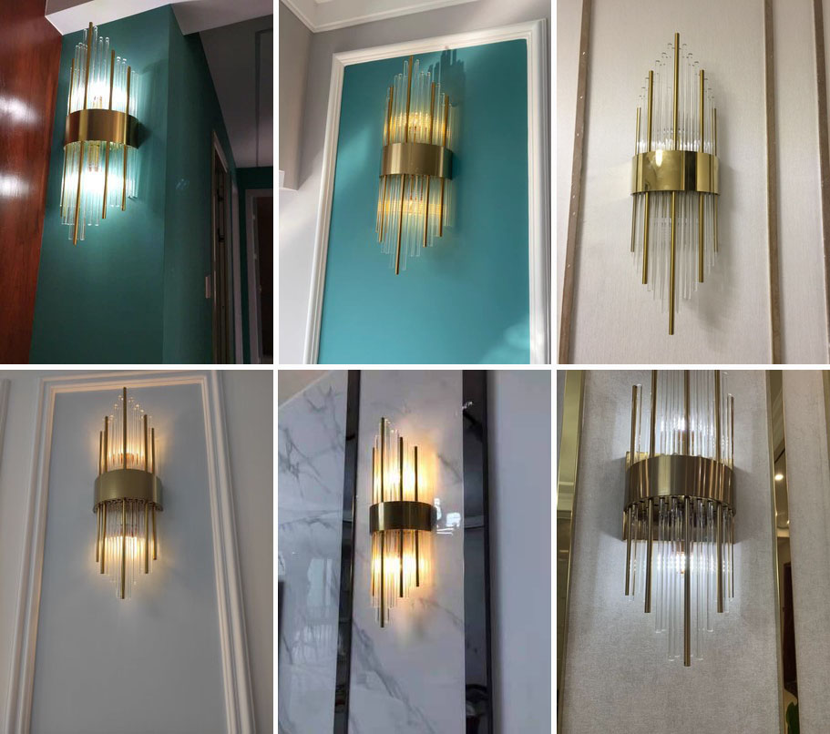 Đèn tường pha lê là loại đèn được thiết kế rất tinh xảo với sự kết nối hài hoà giữa các thanh pha lê với nhau và sự phản chiếu ánh sáng của đèn led