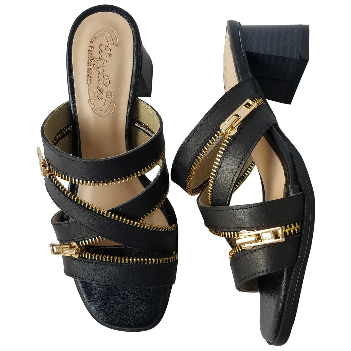 - Dép nữ cao gót quai ngang một bản TRường Hải màu đen gót vuông 8cm da mềm DN139 thiết kế với kiểu dáng ôm chân, thon gọn, thoải mái di chuyển mà không lo