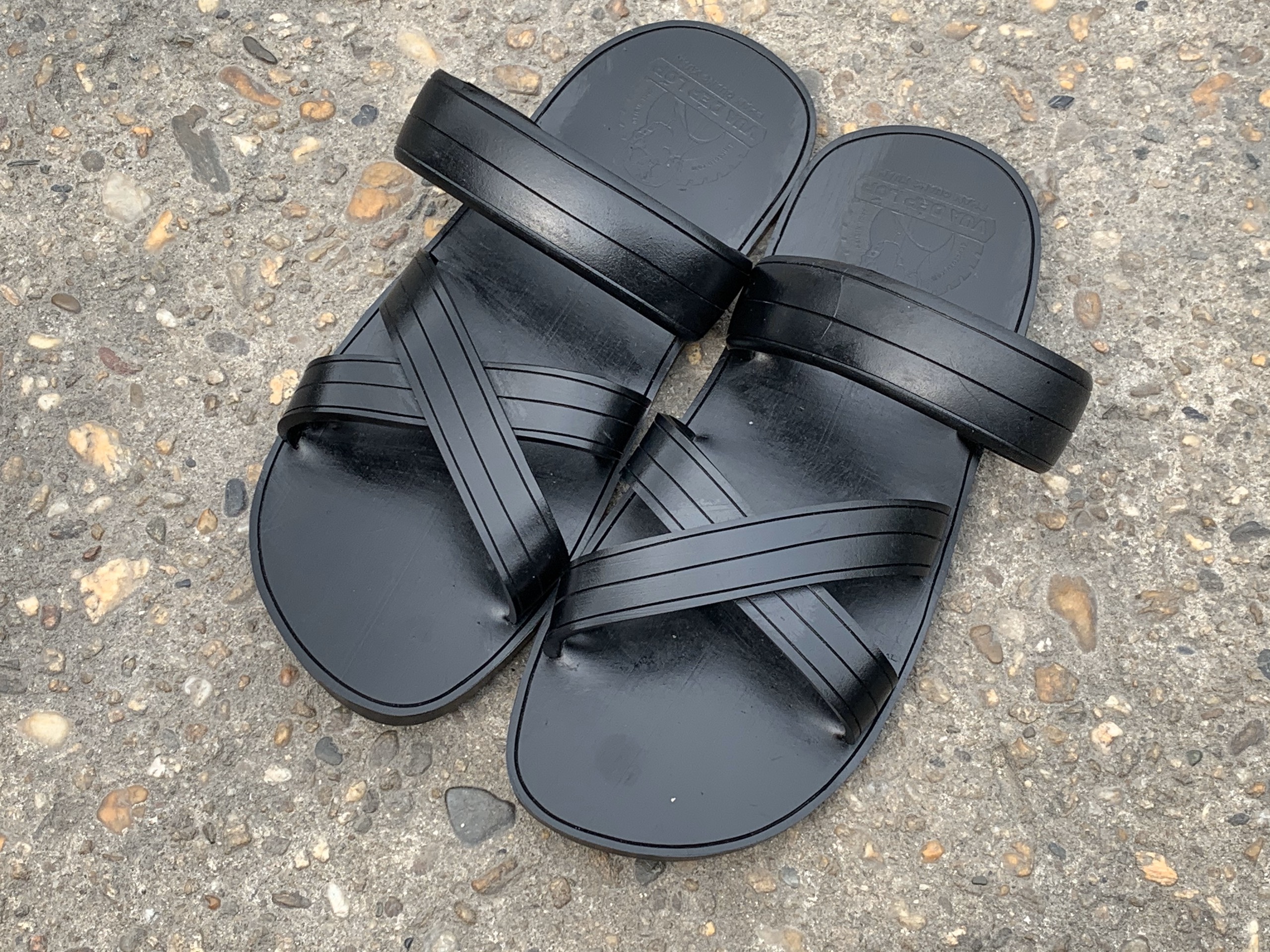 Mẫu dép cao su 3 quai chéo làm thủ công từ lốp oto của Nghệ nhân Vua Dép Lốp Phạm Quang Xuân