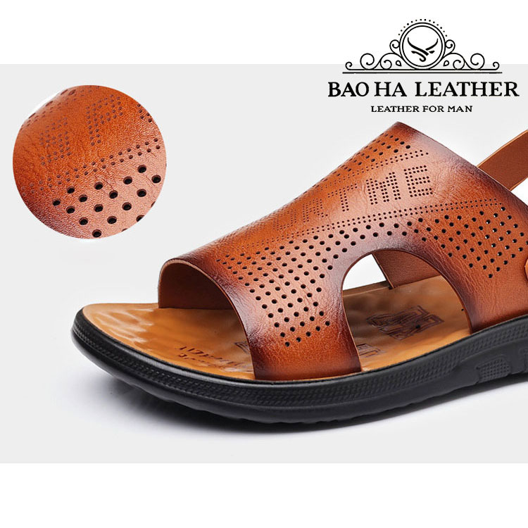 ✨Dép da nam quai ngang đục lỗ thoáng khí BHD888