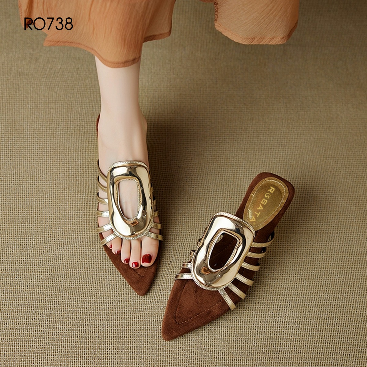 MÔ TẢ SẢN PHẨM: Dép nữ quai ngang, mũi nhọn, đế cách điệu ROSATA RO738 - 5p - Đen, Nâu - BKSTORE Giày được làm từ chất liệu da PU cao cấp, bền và dễ