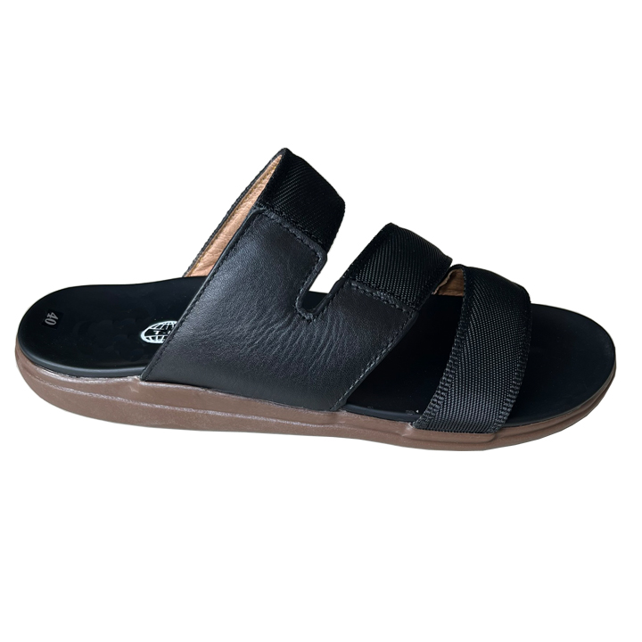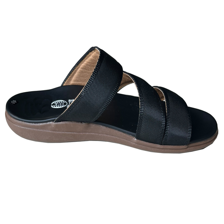 ✨Dép nam quai chéo Trường Hải quai dù phối da bò đế cao 2.5cm màu đen QC200