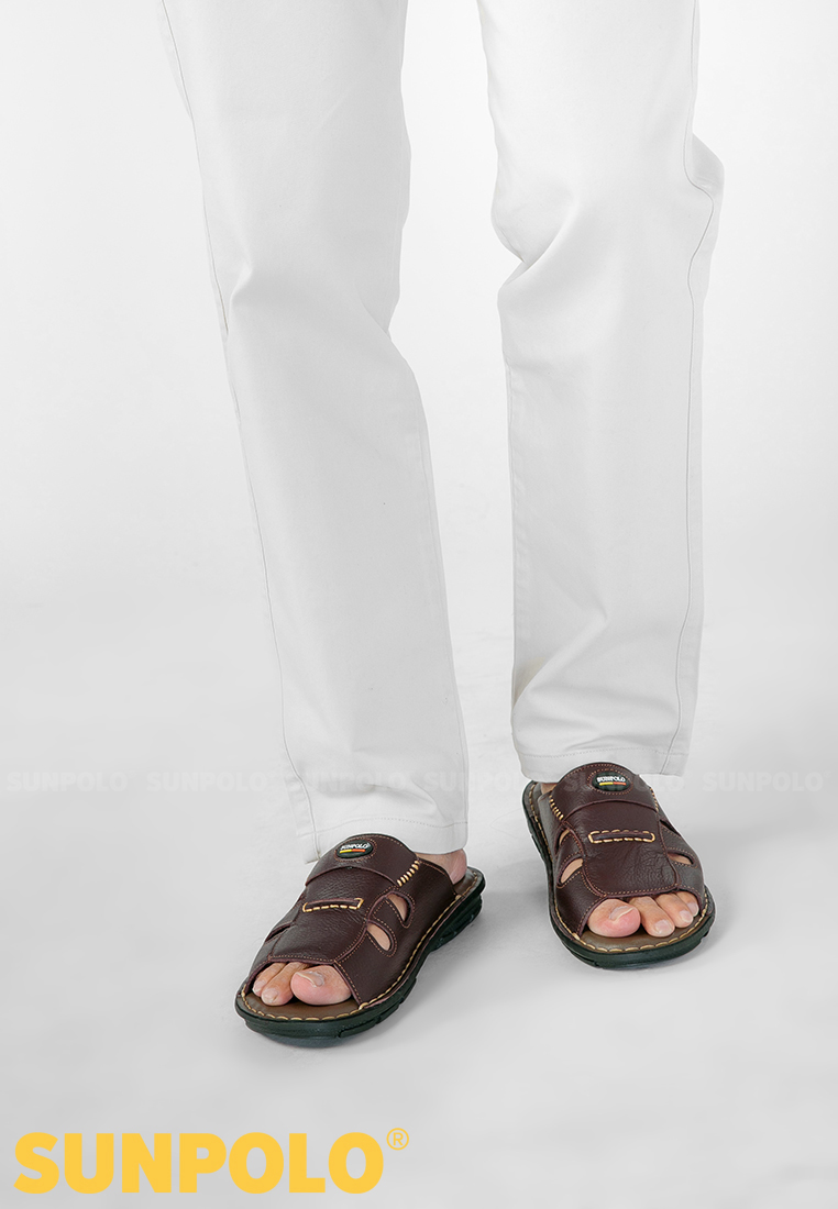 ✨Dép nam quai ngang da bò SUNPOLO AQN005 phiên bản nâu