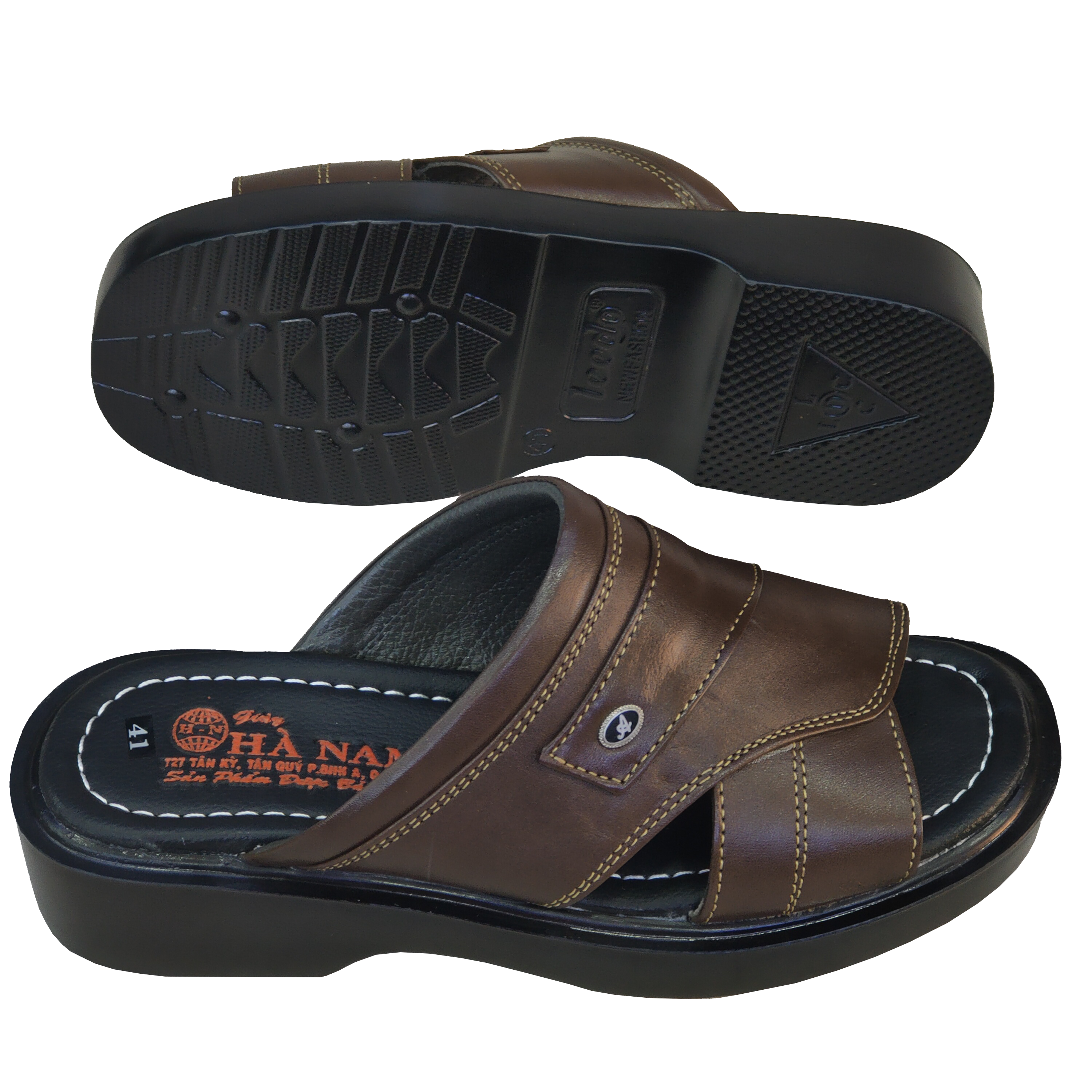 DÉP DÉP NAM DA BÒ CAO CẤP - THƯƠNG HIỆU HÀ NAM - Da bò thật, bền đẹp: Dép Nam được làm từ 100% da bò thật, mềm mại, thoáng khí, đảm bảo độ bền