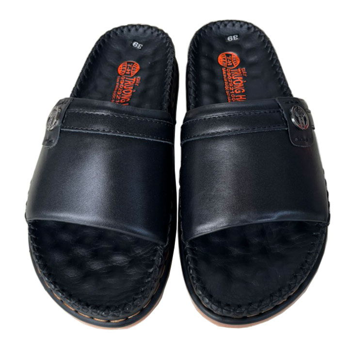 Dép nam quai ngang một bản cao 3.5cm chính hãng Trường Hải da bò thật màu đen QN178