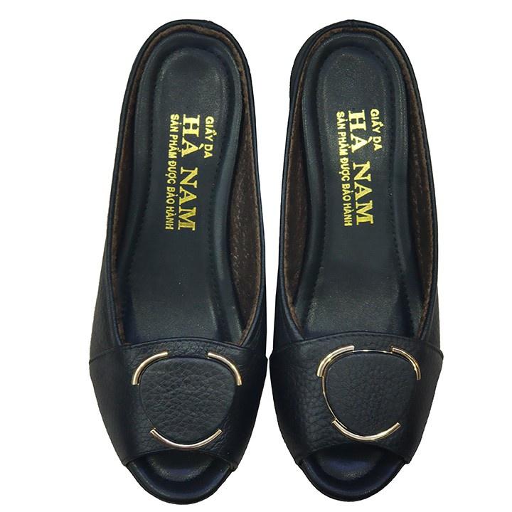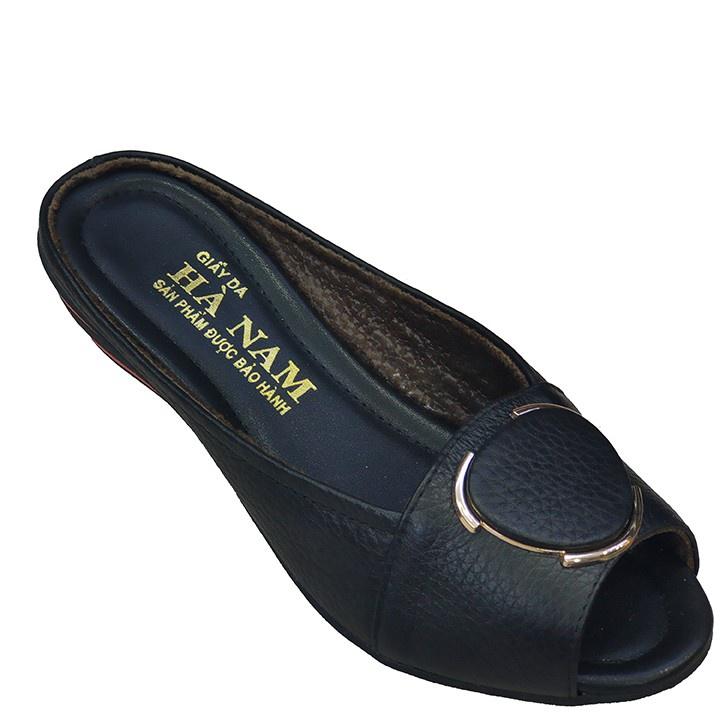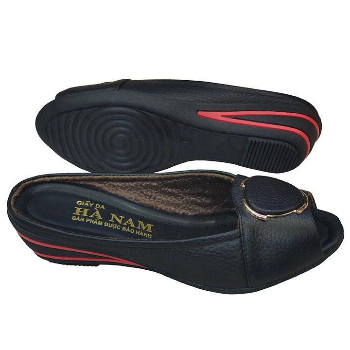 Dép Nữ Quai Ngang Đế Xuồng Da Bò Thật TiTi ĐÔ Cao Cấp 4cm DNU2076d