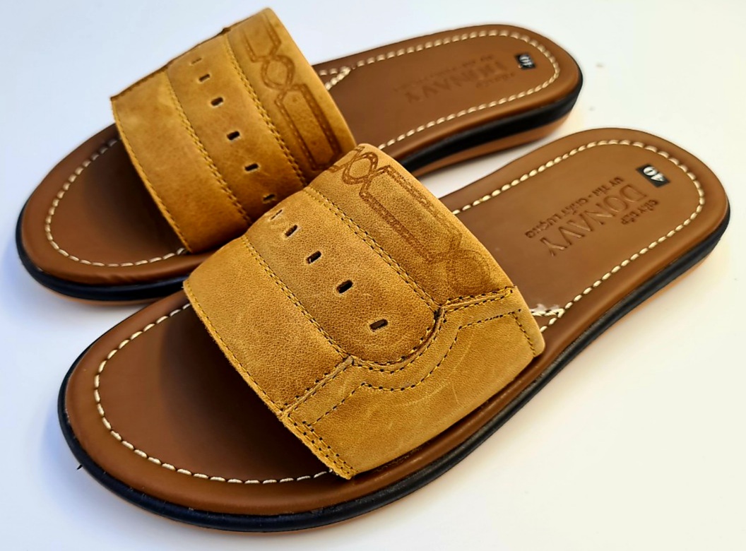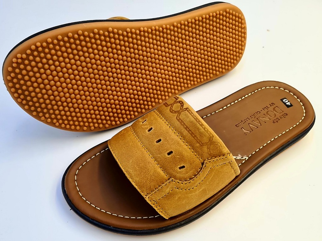 Mua tại TiktokDép quai ngang nam da bò 100%, quai 02 lớp da Bò Donavy cao cấp may full quai và đế rất chắc chắn DONAVY1MC Chất liệu: Da bò thật 100% da bò tự nhiên Đế cao su tốt đi siêu êm, chống chơn, trượt. Da được may vào đế cẩn thận, đẹp bao đi nước Hàng đảm bảo giống hình