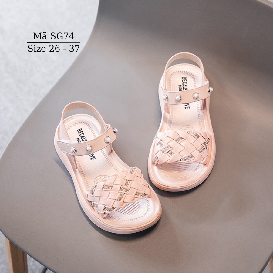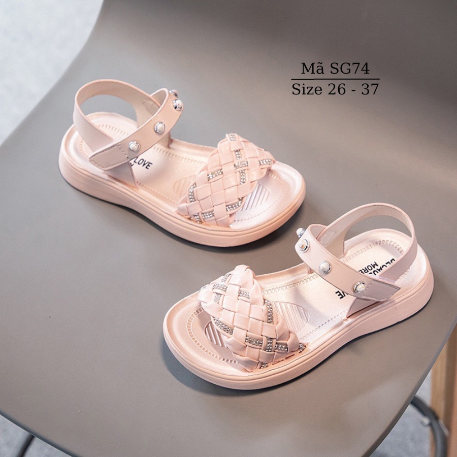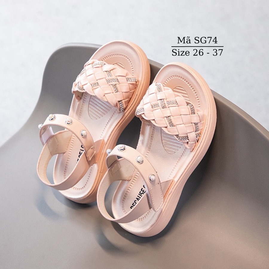 Dép sandal bé gái quai hậu tết sam điệu đà thời trang êm nhẹ chống trơn trượt cho trẻ em học sinh đi học đi biển SG74 Dép quai hậu cho bé gái SG74 thiết