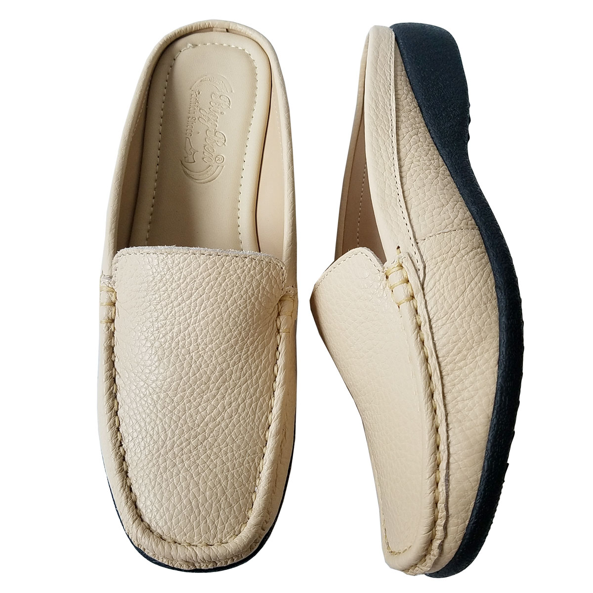 Giày Sục Nữ Giày Cao Gót 3Cm Da Bò Thật Siêu Mềm Cao Cấp Evelynv 3P2916 (Đen)
